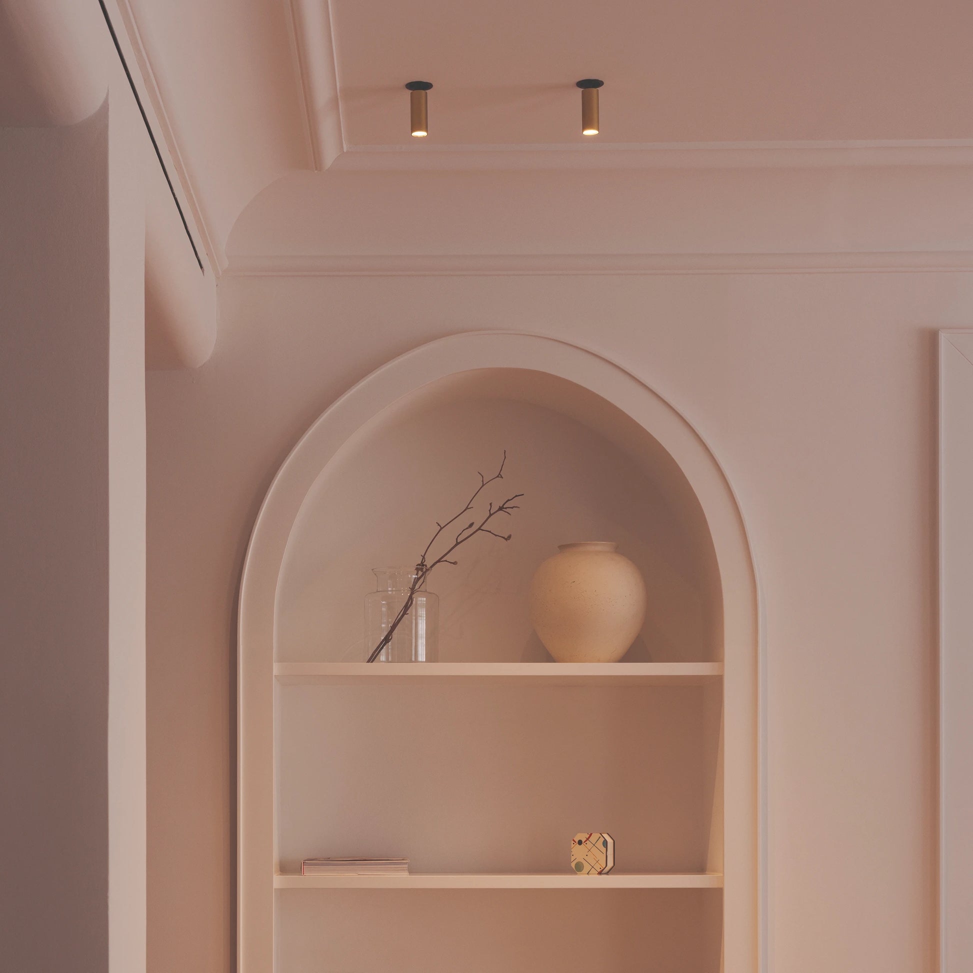 Le spot Fit est un projecteur pour des solutions d'éclairage encastrées individuelles. Géométrie cylindrique et formes essentielles, il se distingue par son aspect minimaliste et sa fonctionnalité car il peut être orienté dans n'importe quelle direction. Le périmètre noir autour de sa bouche et son accessoire nid d'abeille, souligne sa vocation antireflet.