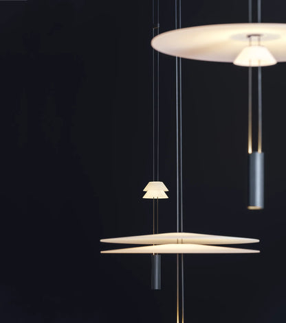 Le designer Antoni Arola présente la collection Flamingo Mini, qui se compose de plusieurs suspensions de dimensions résolument réduites. Elle se caractérise par un design déconstruit qui sépare la source lumineuse LED des différentes strates de diffuseurs translucides, pour créer ainsi des gradients diffus de lumière apaisante.