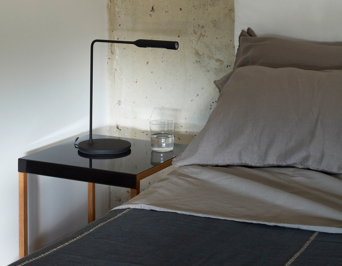 La gamme de luminaires Flo est le résultat de la première collaboration de Foster + Partners avec le fabricant d'éclairage italien spécialisé Lumina. Cette lumière minimale intègre la dernière technologie LED dimmable dans une forme cintrée et incurvée. Le corps pivote sur sa bas, la tête est orientable, et il est possible de choisir entre deux intensités. Extrêmement pratique, l'allumage se fait directement à l'extrémité de la tête.