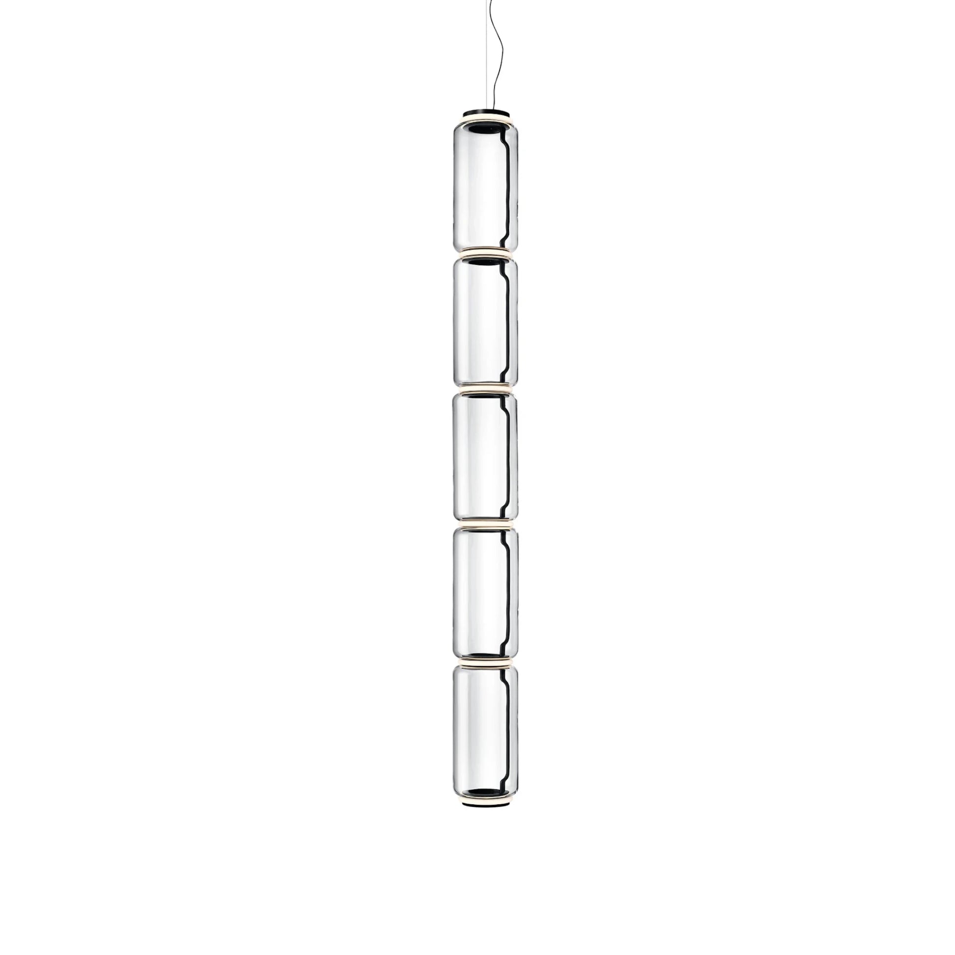 Suspension issue de la collection Noctambule éditée par Flos, ce modèle est composé de 5 cylindres successifs de 45cm de hauteur chacun. Cette gamme permet des compositions de plusieurs éléments en verre connectés entre eux (magnifique dans une cage d'escalier !).