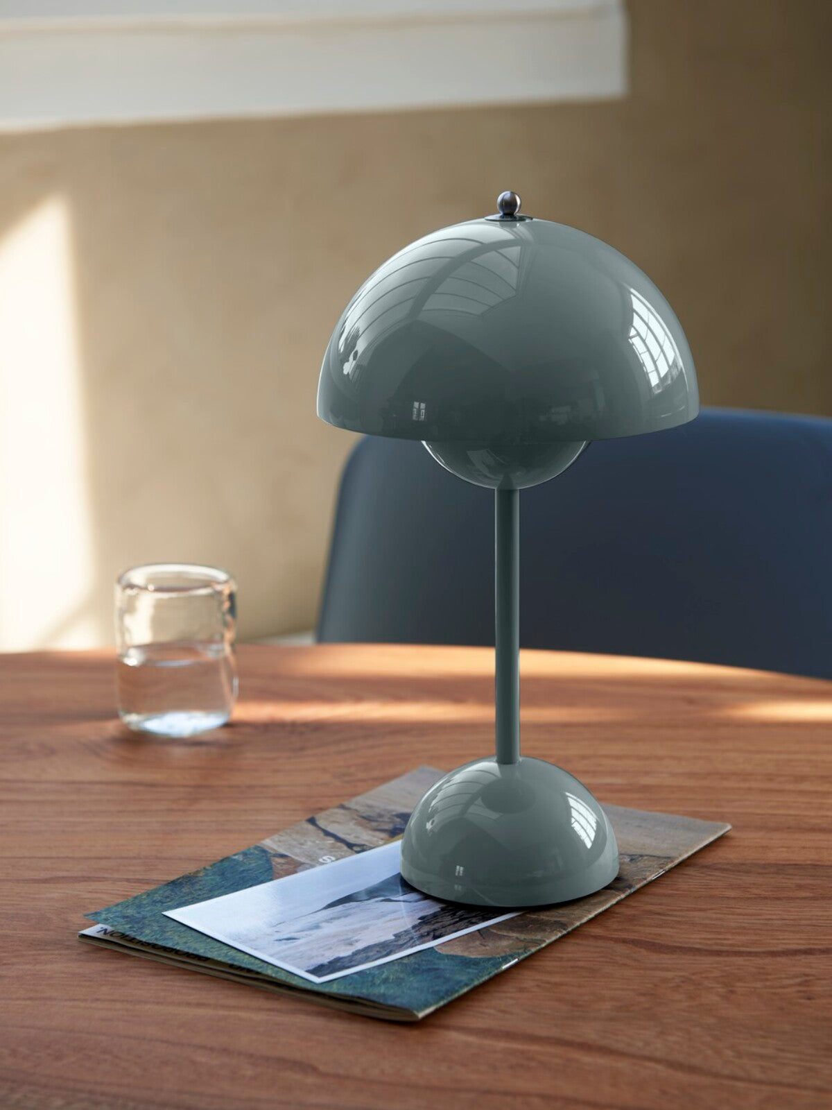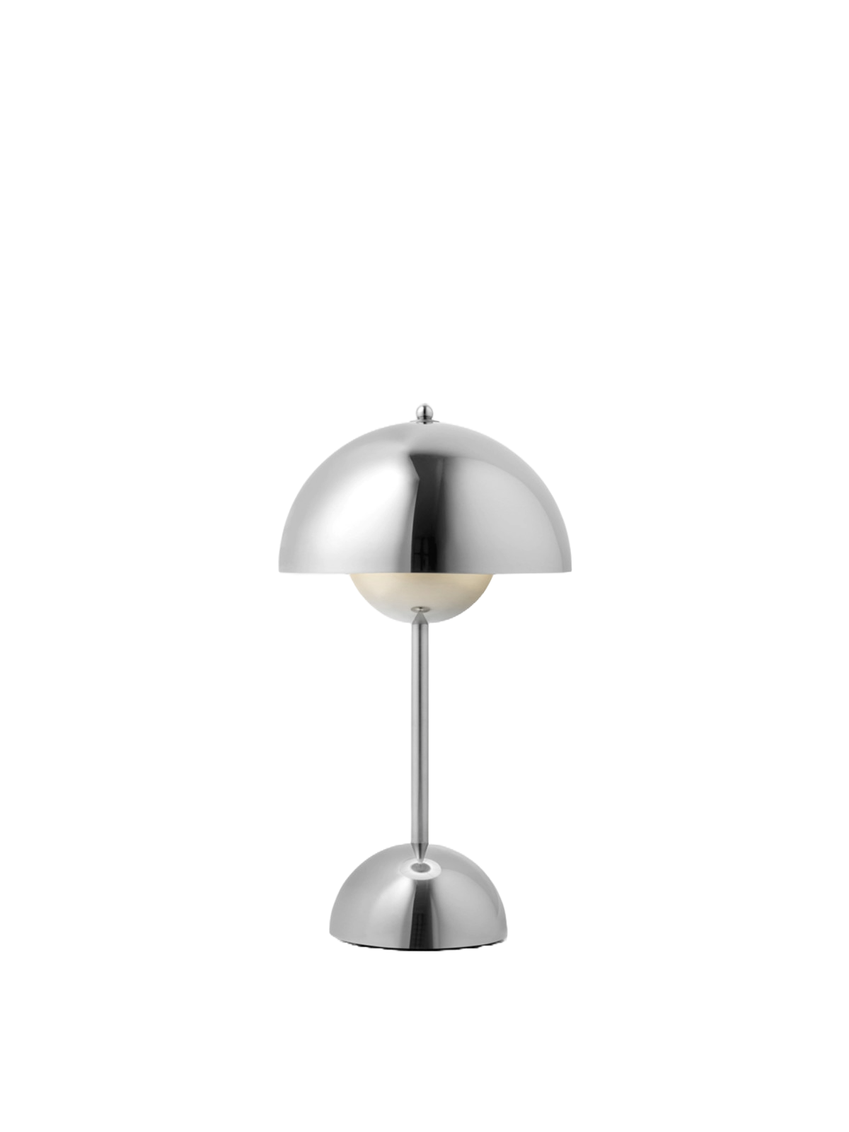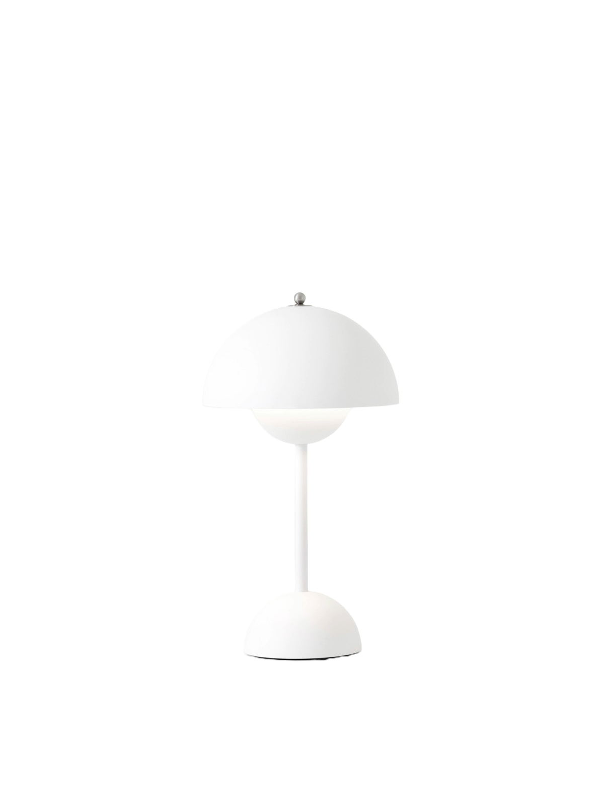 Cette lampe portable en polycarbonate est l'exacte réplique, avec des dimensions réduites, de sa grande sœur. FlowerPot est devenu un objet emblématique des 70's mais son design intemporel a su traverser les décennies sans prendre une ride ! La force de cette lampe réside dans le jeu d'emboîtement des deux coupoles qui composent l'abat-jour. FlowerPot affiche des formes rondes, élémentaires et ludiques. Equipée d'une batterie et d'un chargeur micro UBS fourni, cette lampe sans fil a une autonomie de 11 heures. Le variateur tactile en acier situé au-dessus de l’abat-jour permet de régler l'intensité de la lumière. La lampe Flowerpot VP9 trouvera sa place partout : sur une table, un bureau, une étagère, une console, ou encore sur une table de chevet. Elle est équipée d'une source LED économique et efficace. Verner Panton est considéré comme l'un des designers les plus influents du XXe siècle. Au cours de sa carrière, il crée des objets au design innovant et futuriste. Son style, typique des années 60' et 70', reste empreint d'une grande modernité.