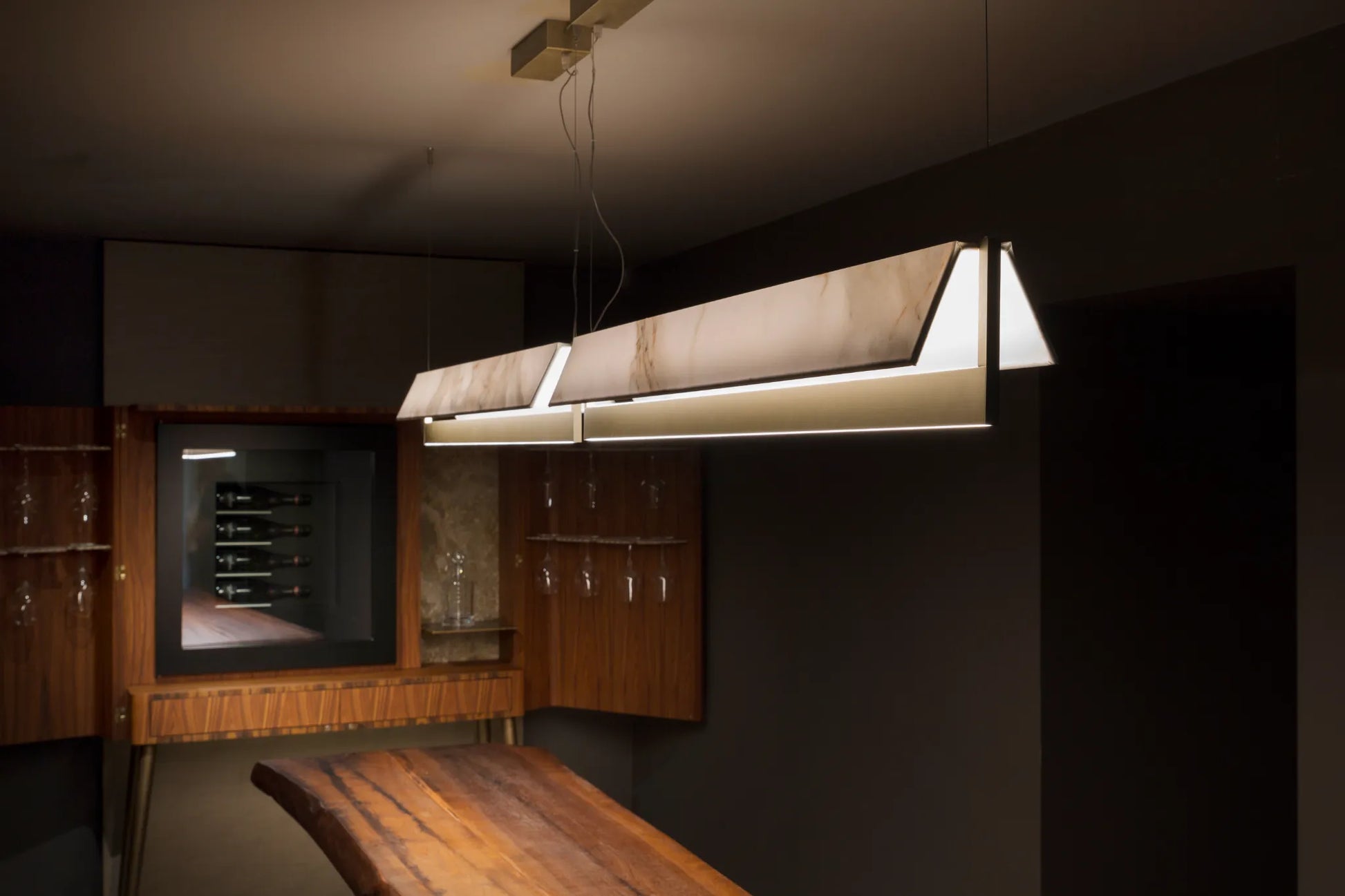 Avec l'association du diffuseur textile supérieur ou frontal dans la version murale, elle devient un meuble presque une sculpture lumineuse surtout quand il est répété ou en association de différentes mesures. Sa transversalité et sa modernité sont évidentes, son usage est très large.