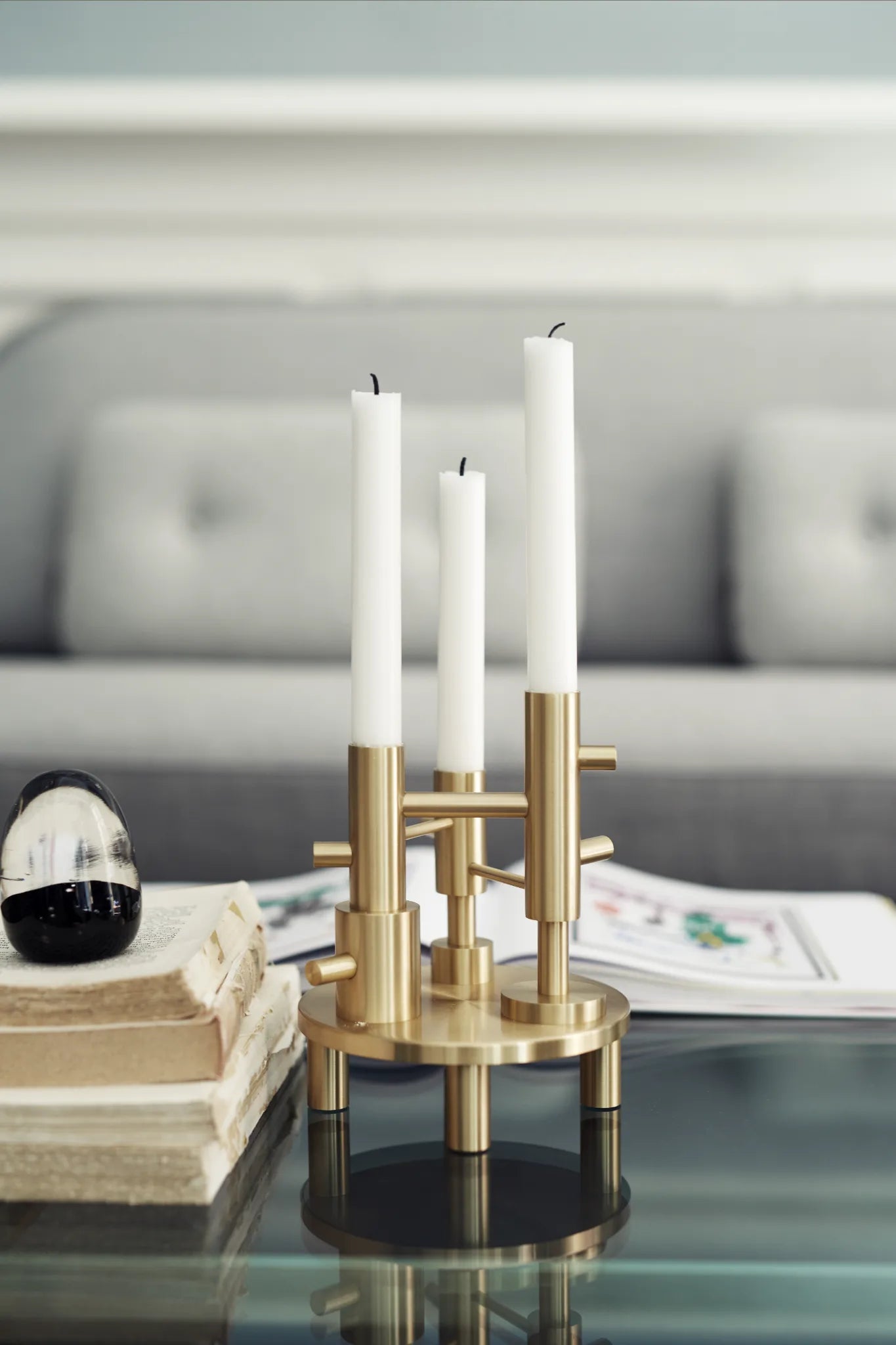 Une nouvelle interprétation du bougeoir de chambre classique, ce design forme un affichage de lumière et de chaleur avec du laiton. Il est d'une grande qualité sculpturale. Ce chandelier fait partie de la collection exclusive d’accessoires ''Objects'' lancée par la légendaire maison d’édition Fritz Hansen. Dans le même esprit que les pièces de mobilier icôniques déjà éditées par la marque, ces nouveaux accessoires allient des matériaux de haute qualité à une fabrication artisanale. Le directeur de Fritz Hansen précise : ''En créant cette gamme d’objets, nous nous sommes inspirés nos collections antérieures, et nous avons également tendu la main aux designers contemporains danois et internationaux afin de continuer notre histoire''.