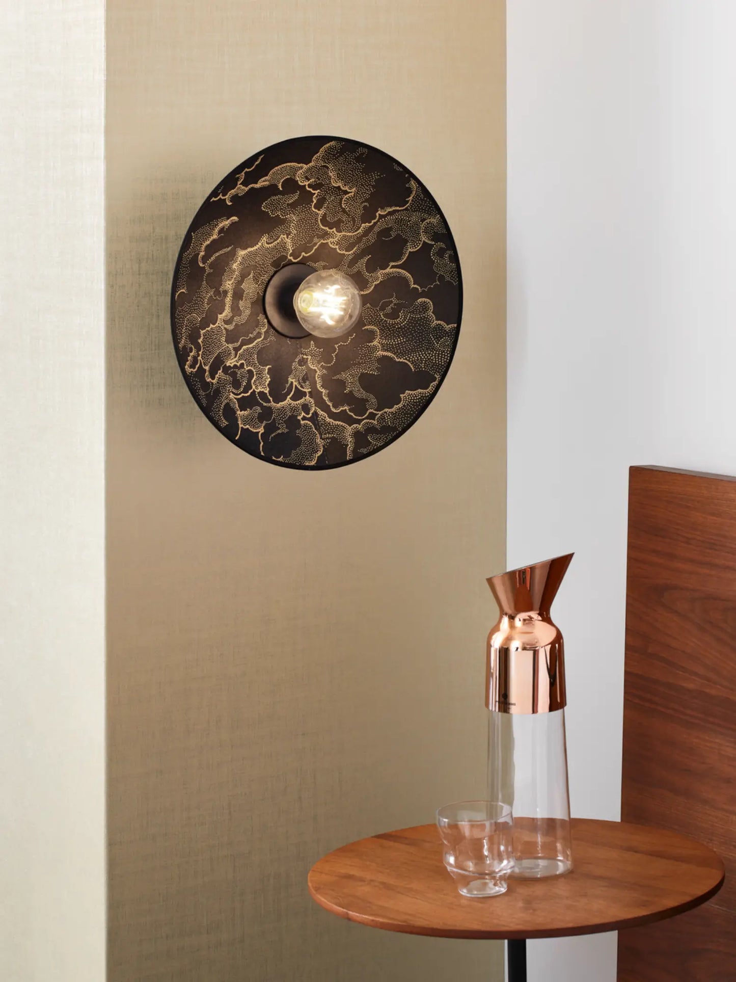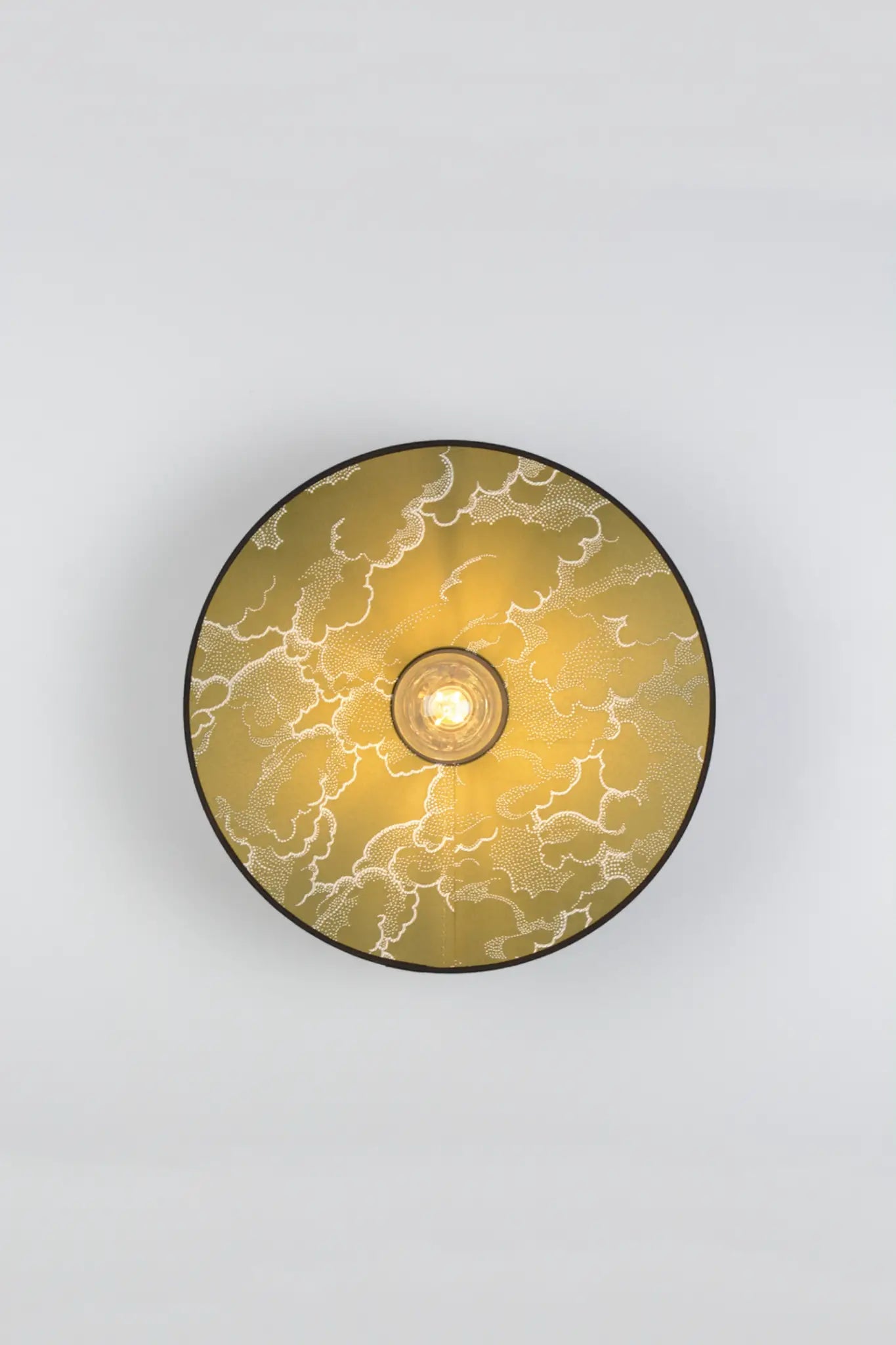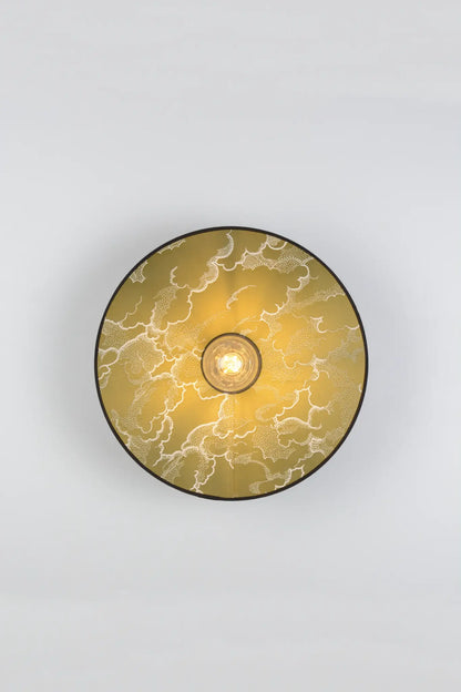 Cette nouvelle version puise son inspiration dans l’esthétique japonaise avec un tissu jacquard satiné aux motifs graphiques rappelant les paysages des estampes traditionnelles. Le dessin des nuages, "Kumo" en japonais, se déploie tel une fresque aux lignes calligraphiques, offrant un rendu sculptural et affirmé. Disponible en noir et en kaki, des teintes profondes et masculines, cette applique s’intègre parfaitement dans un intérieur chic et contemporain.