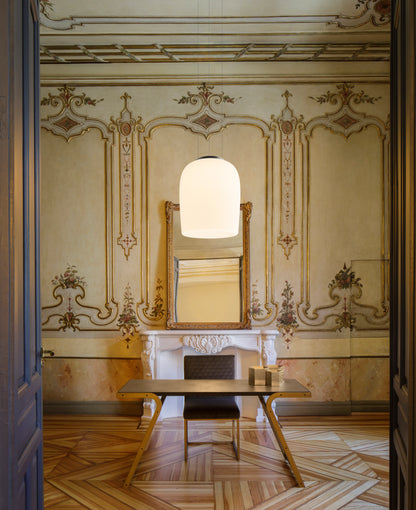 Comme son nom l’indique, la suspension Ghost présente une silhouette éthérée. Retenue par de fins câbles presque invisibles, cette lampe à la fois élégante et imposante semble flotter dans l’air. Suspendue à mi-hauteur, et quel que soit l’espace qu’elle occupe, cette suspension sculpturale devient un point de mire à l’effet théâtral. Faite d’un verre triplex opale soufflé bouche à la surface lisse, elle diffuse une lumière chaude et accueillante. Elle éclairera très convenablement une pièce de 20m2.