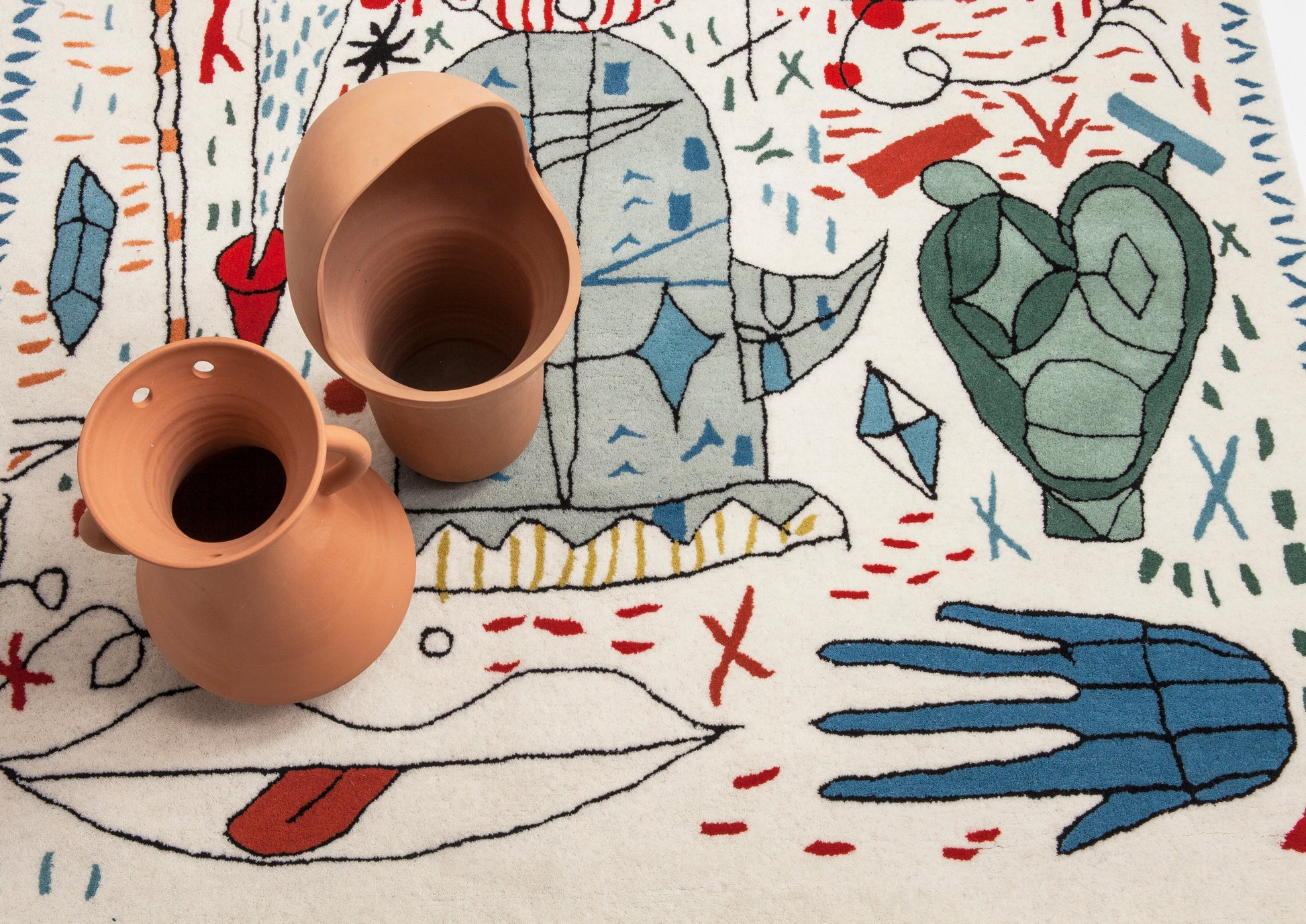 Un premier coup d’œil révèle un enchevêtrement chaotique de couleurs et de formes qui envahissent le tapis. Cependant, après avoir regardé attentivement, l’imagination de Jaime Hayon prend vie : tortues, lèvres, mains, tabourets, poissons, hommes – moitié oiseaux... Nanimarquina propose également de réaliser ses tapis sur-mesure. N'hésitez pas à nous consulter: customers@asteri.fr