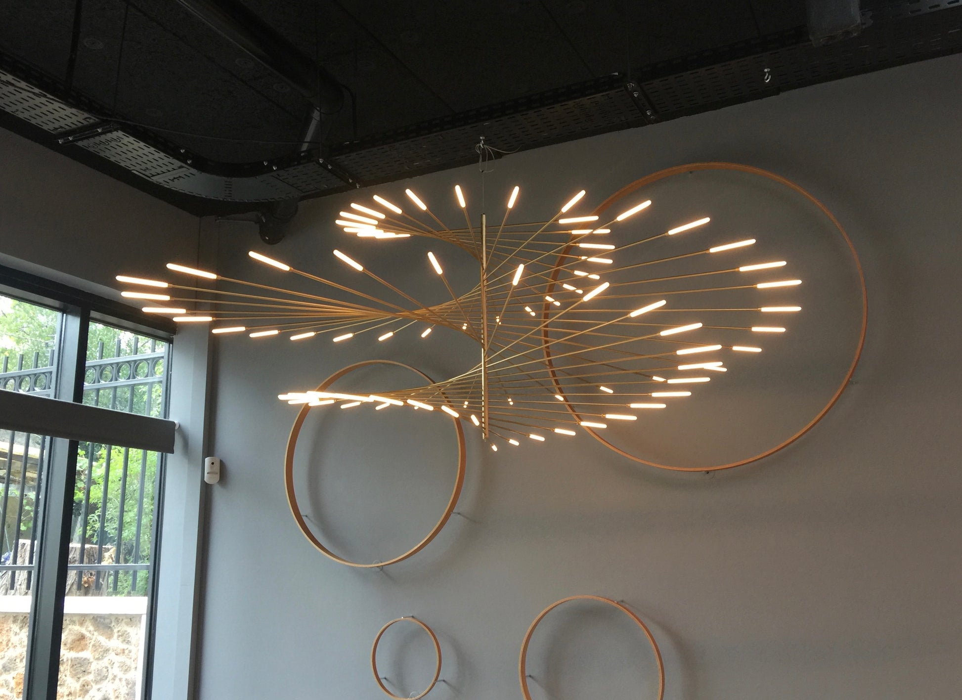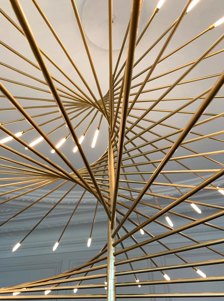 La suspension M101, sublime de légèreté et de graphisme, est ici déclinée en double, soit deux fois plus haute que l'originale.