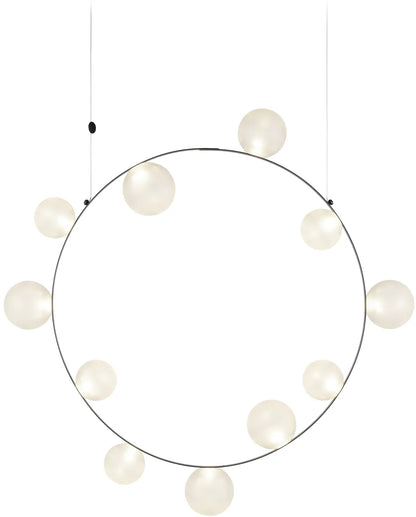 Hubble Bubble, conçu par Marcel Wanders, est une suspension aérienne et joyeuse. Elle est proposée avec 7 ou 11 bulles de LED en verre, disponibles en versions irisées ou givrées, posées sur un cadre métallique circulaire. Hubble Bubble peut être accroché à la fois horizontalement et verticalement. Hubble Bubble est une belle pièce décorative, qui pourra trouver sa place au dessus d'une table, dans une chambre ou une entrée.