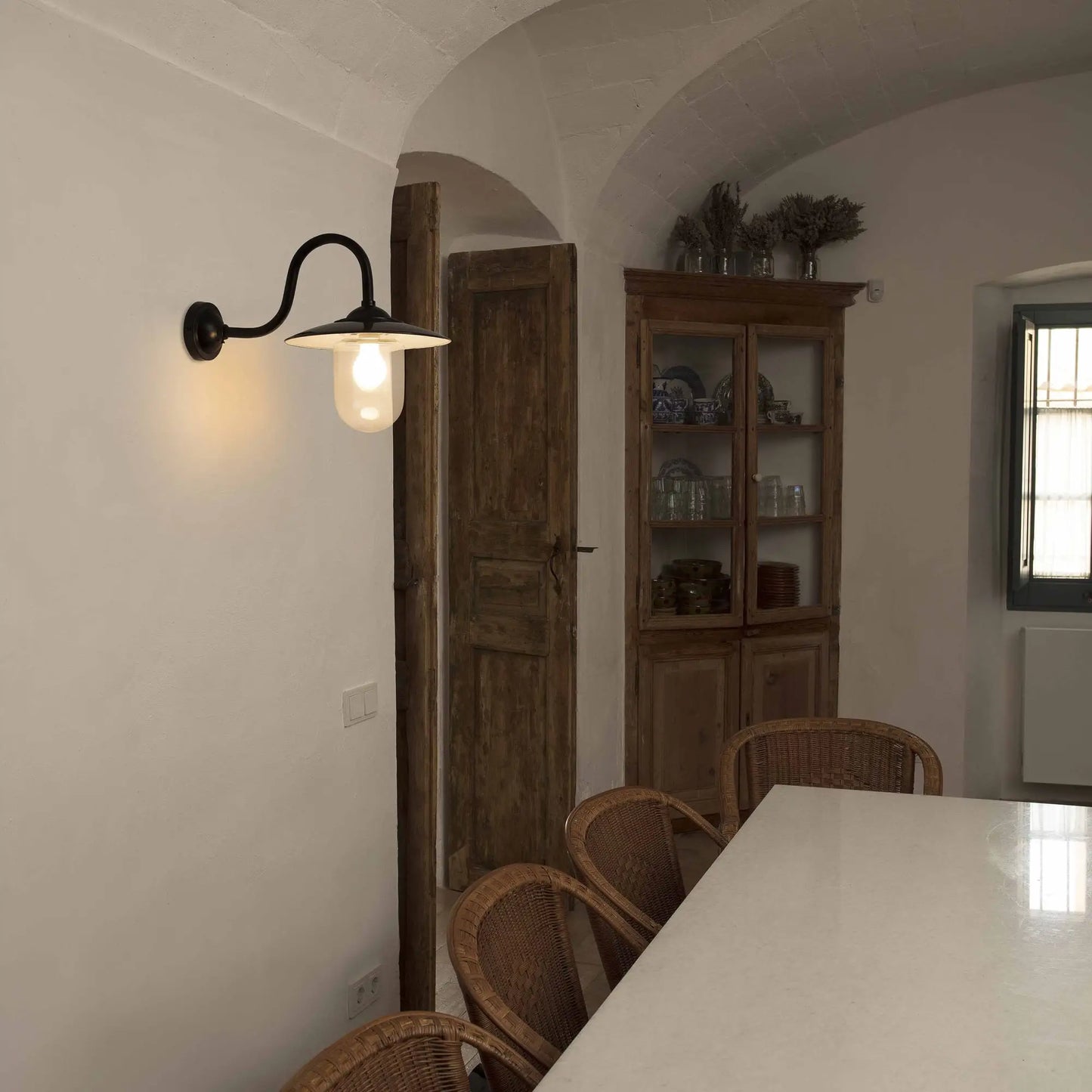 HUDSON est une applique murale en métal au style industriel, inspirée des luminaires des usines américaines des années 50. Son design robuste et vintage apporte une touche rétro tout en restant fonctionnel pour l'éclairage intérieur. La structure en acier noir brillant et le diffuseur en verre transparent créent une ambiance chaleureuse et accueillante, parfaite pour les salons, cuisines ou bureaux modernes.