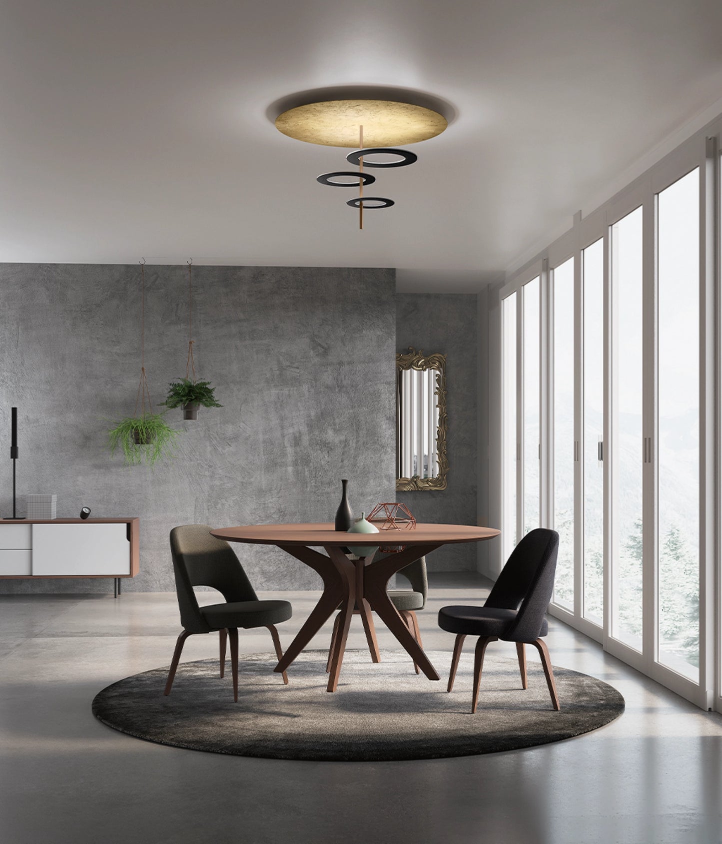 Hula Hoop P3 est un plafonnier aux lignes parfaites. Il se compose d’une base au plafond avec un câble flexible qui peut être raccourci. Au bout de ce câble, une tige métallique soit avec une couleur blanche ou noire, où viennent se fixer les anneaux lumineux LED. Ce plafonnier est idéal pour procurer une ambiance chaleureuse dans un salon ou une chambre.