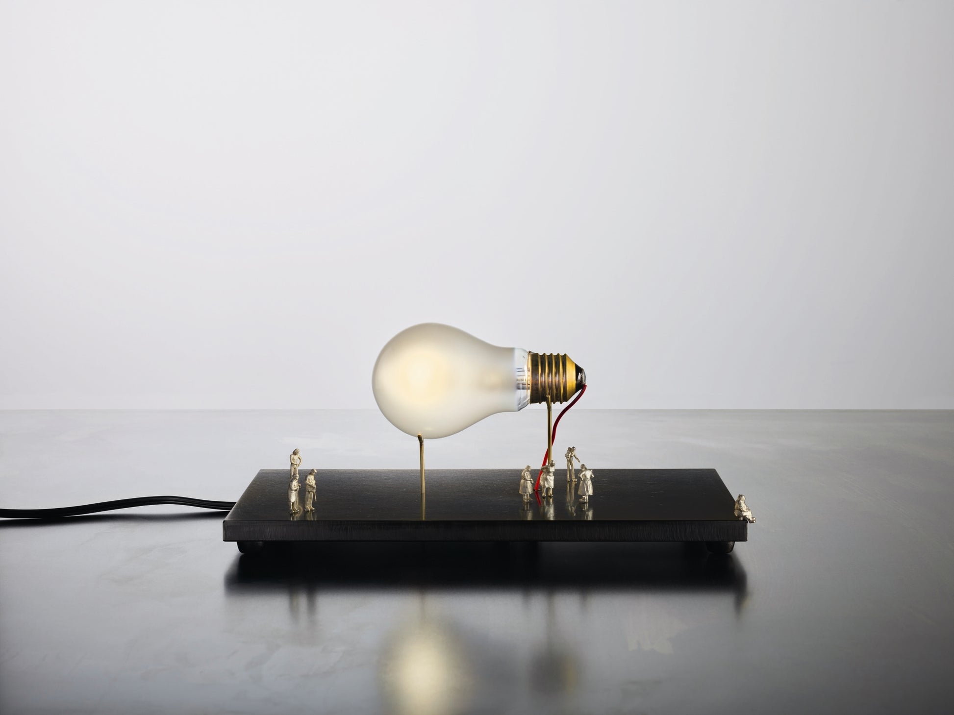 Une nouvelle déclinaison de l'ampoule, vue cette fois par Ingo Maurer comme un monument que l'on visite: un adieu à l'ampoule incandescente puis halogène?....
