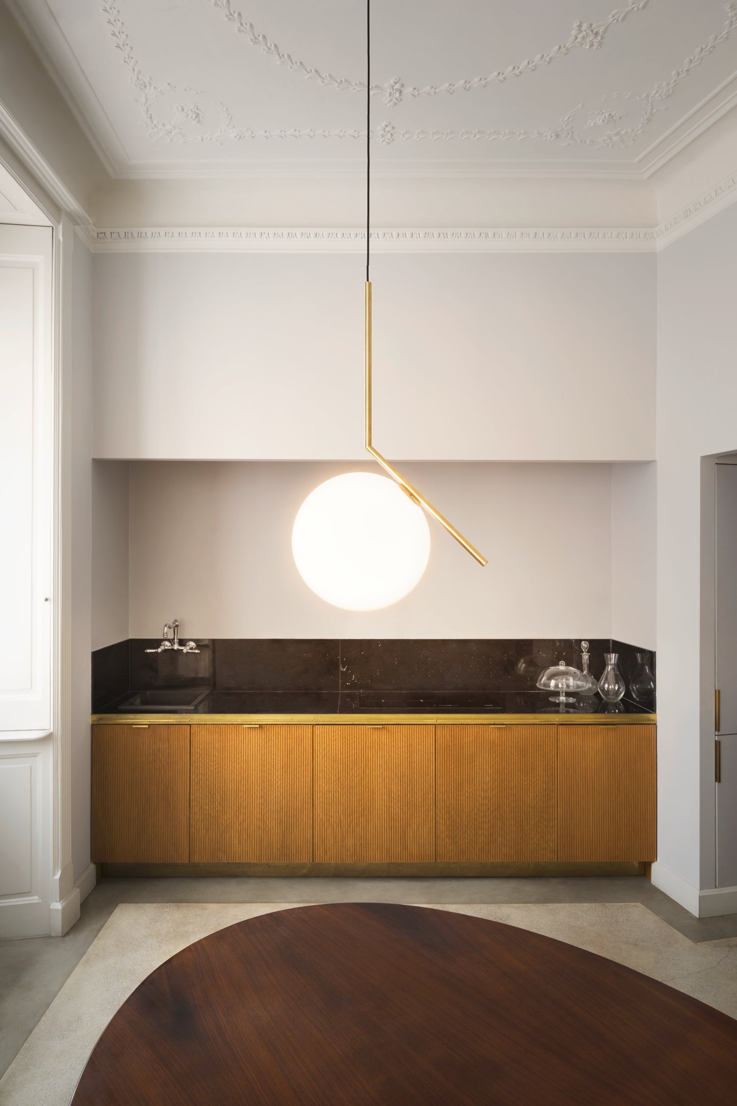 La suspension IC S2 peut éclairer une pièce de 20 à 25m2 selon l'ampoule choisie, car son verre blanc brillant diffuse parfaitement la lumière.