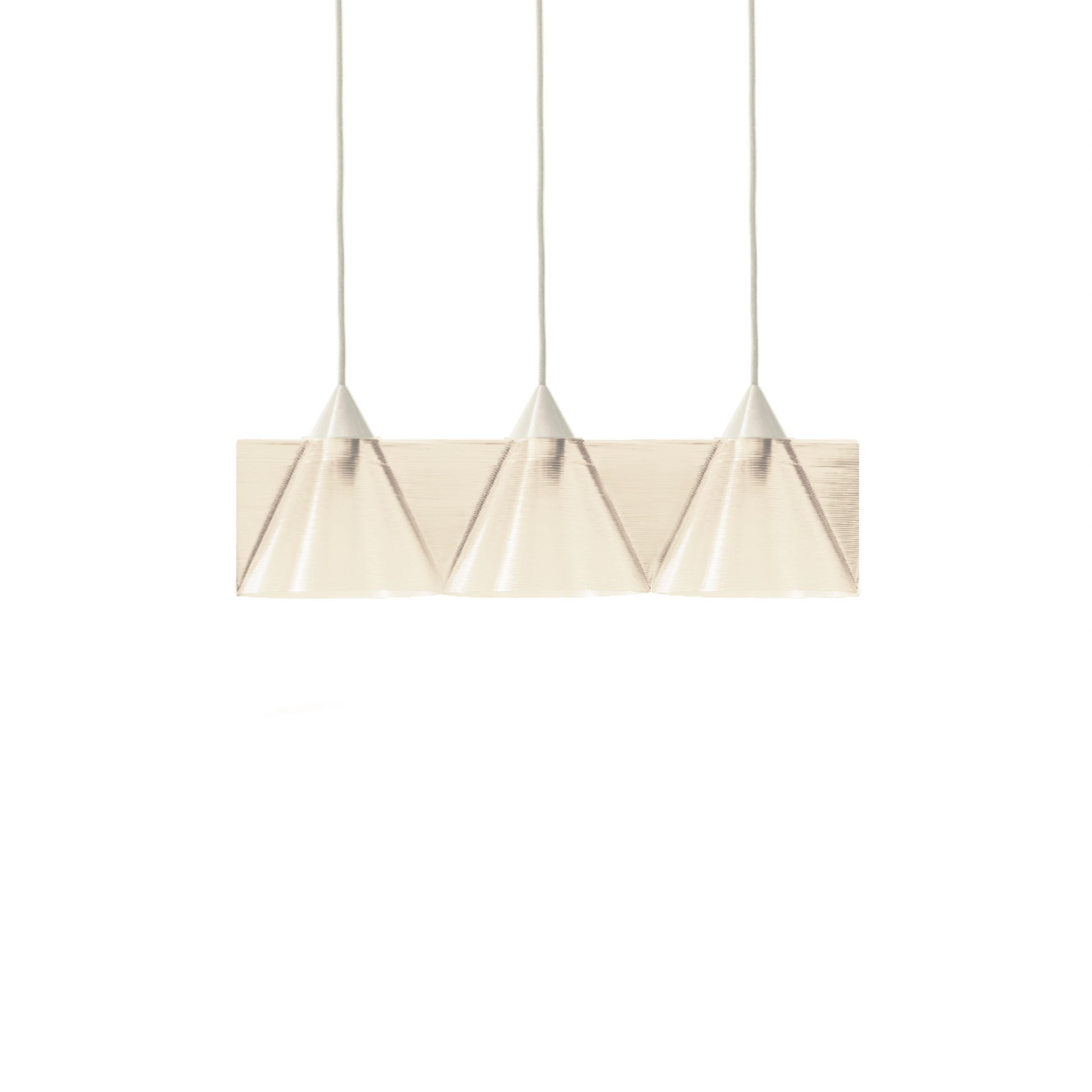 L’élégance s’invite avec la suspension Iko Trio champagne, où trois formes en résine recyclée aux teintes dorées s’harmonisent pour créer une lumière douce et brillante. Parfaite au-dessus d’une table ou dans un espace de réception, elle associe raffinement et légèreté.