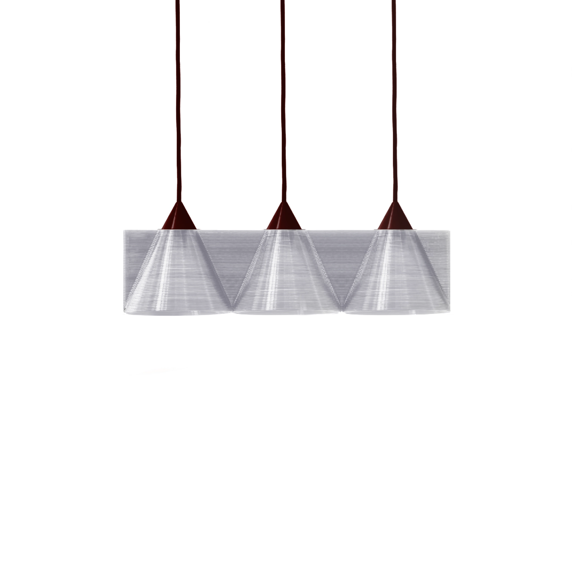 Ultra contemporaine, la suspension Iko Trio chrome reflète son environnement comme un mobile lumineux suspendu dans l’espace. Composée de trois éléments miroitants en résine recyclée finition chrome, elle capte et redirige la lumière avec intensité, créant un jeu de reflets unique. Idéale pour une décoration design, graphique ou futuriste.