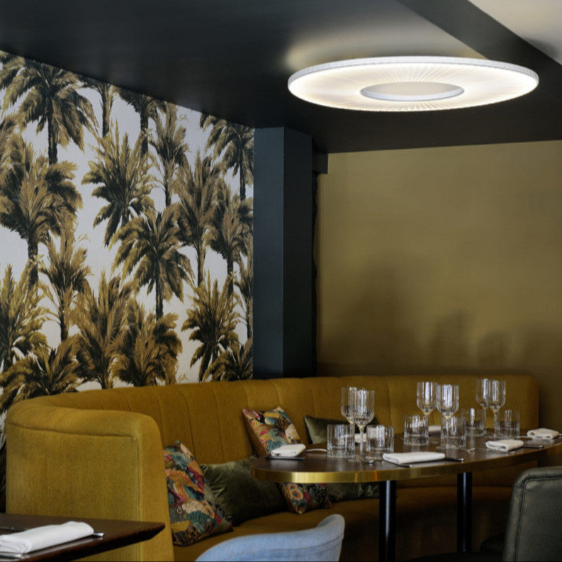 Le plafonnier Iris 80 cm de Dix Heures Dix est un luminaire élégant et moderne, conçu pour diffuser une lumière douce et homogène. Avec son abat-jour en textile plissé, il crée une ambiance chaleureuse et raffinée, tout en apportant une touche de sophistication à l'espace. Son diamètre de 80 cm le rend idéal pour éclairer de grandes pièces, comme un salon ou une salle à manger, tout en ajoutant un design épuré et contemporain à l'intérieur.