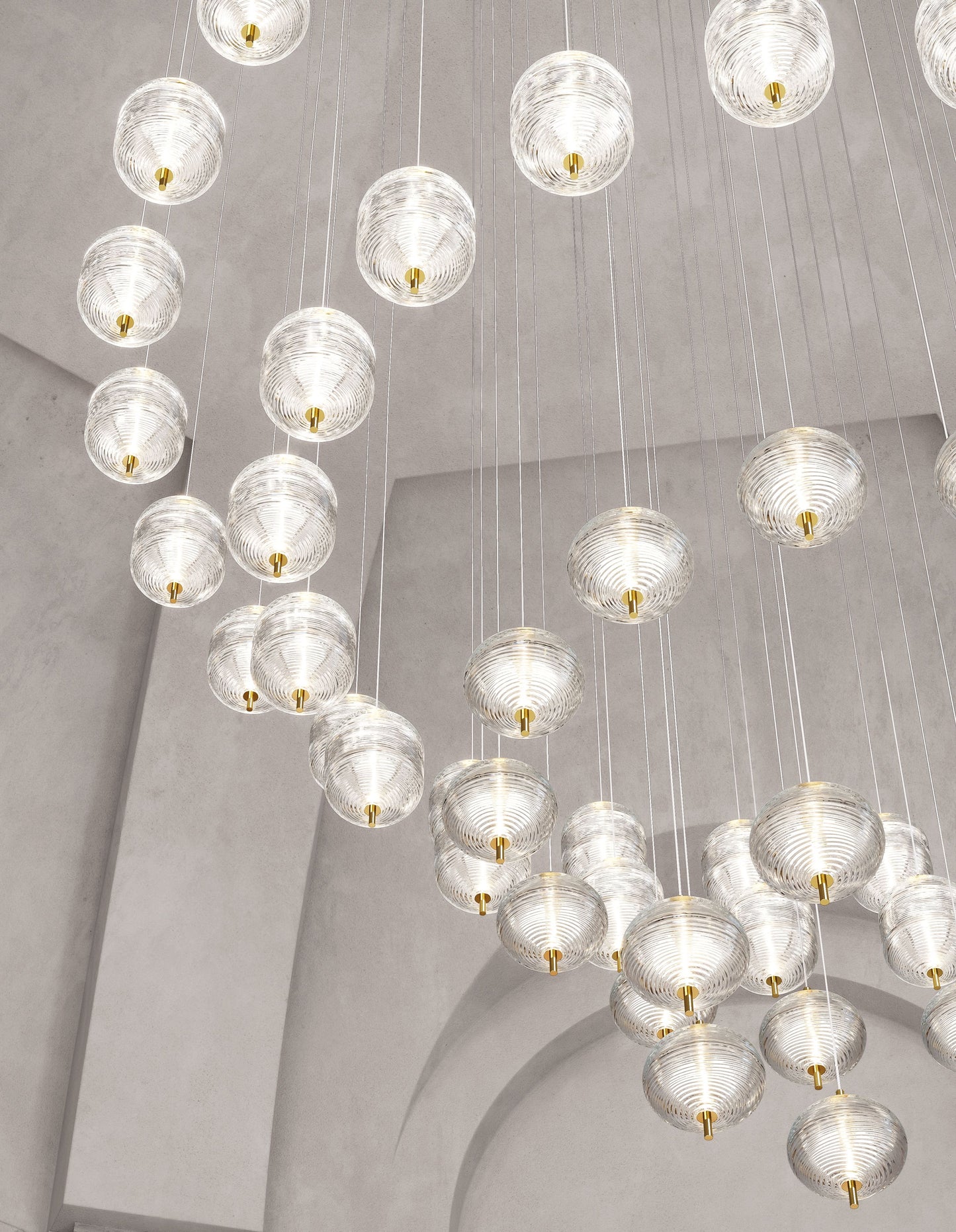 La suspension Jefferson dessinée par Luca Nichetto fait référence à la musique et aux images emblématiques des œuvres d’art psychédéliques des années soixante. Le motif vortex qui orne le diffuseur est rehaussé par le classicisme intemporel du cristal de Bohème, qui diffuse des atmosphères de lumière suggestives. Dynamique dans différentes tailles et dans de multiples compositions, l’élégance de Jefferson ne renonce pas aux excellentes performances de l’éclairage intérieur LED.