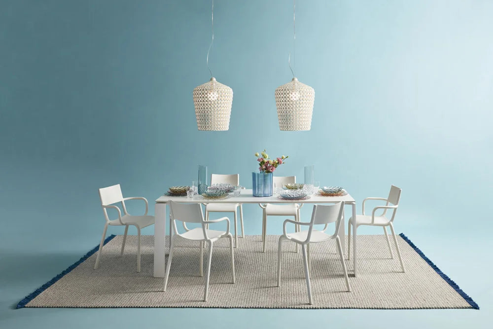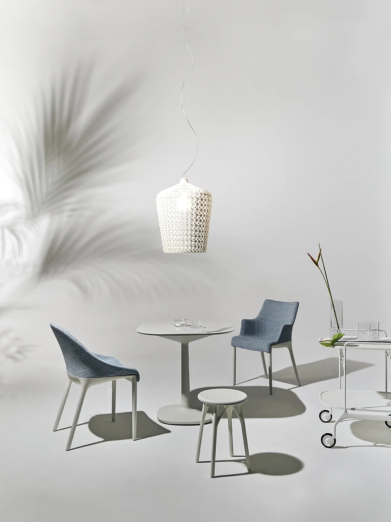La suspensio Kabuki apporte une douche design à votre intérieur, et offre un large choix de couleurs. La collection Kabuki est réalisée par injection. La technologie par injection utilisée permet d’obtenir une structure tramée reproduisant la dentelle grâce à une surface ajourée particulière diffusant la lumière.