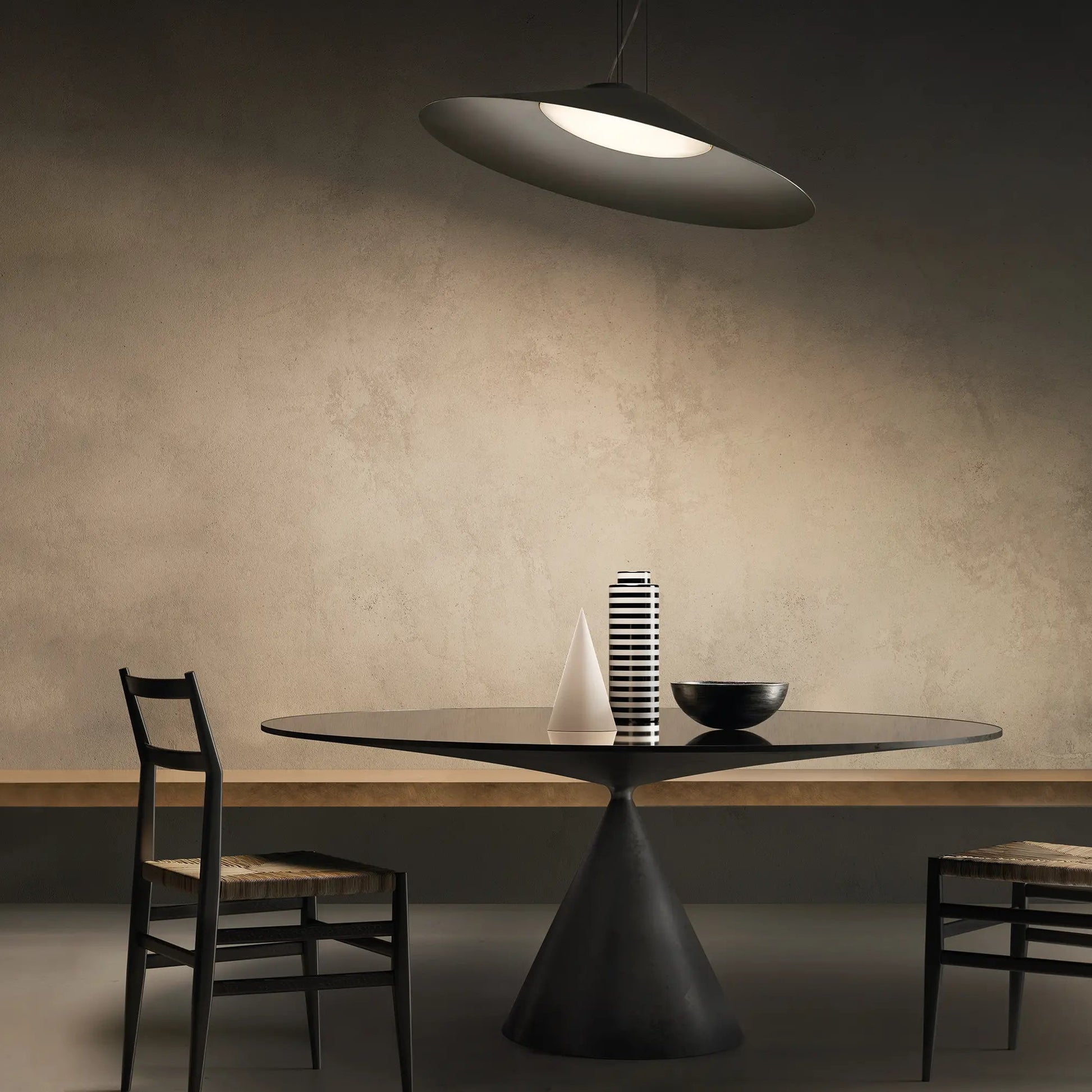 Le diffuseur circulaire diffuse une lumière à la fois directe et enveloppante, idéale pour structurer l’espace sans l’alourdir. Grâce à son orientation ajustable, Kate 43 s’adapte aussi bien aux environnements résidentiels qu’aux projets contract, en apportant une lumière ciblée au-dessus d’une table, d’un comptoir ou d’un espace de travail.