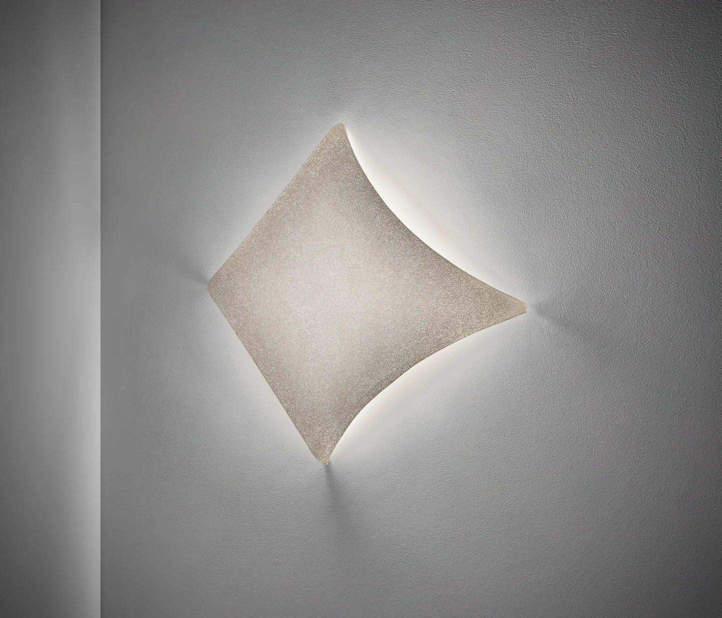 Cette applique en silicone aux lignes géométriques embellit une pièce et habille parfaitement les murs. Elle produit une lumière douce et tamisée.