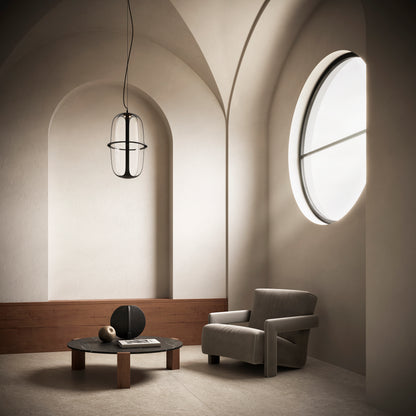 Kooi s’inspire de la peinture chinoise Shanshui et en transmet la philosophie. Grâce au contraste entre le diffuseur en verre et le cadre métallique, l’ombre et la lumière deviennent les protagonistes d’effets visuels continus et de changements de perspective sans précédent. Verre et métal. Léger et lourd. Noir et blanc. L’esprit Shanshui devient une lampe suspendue.