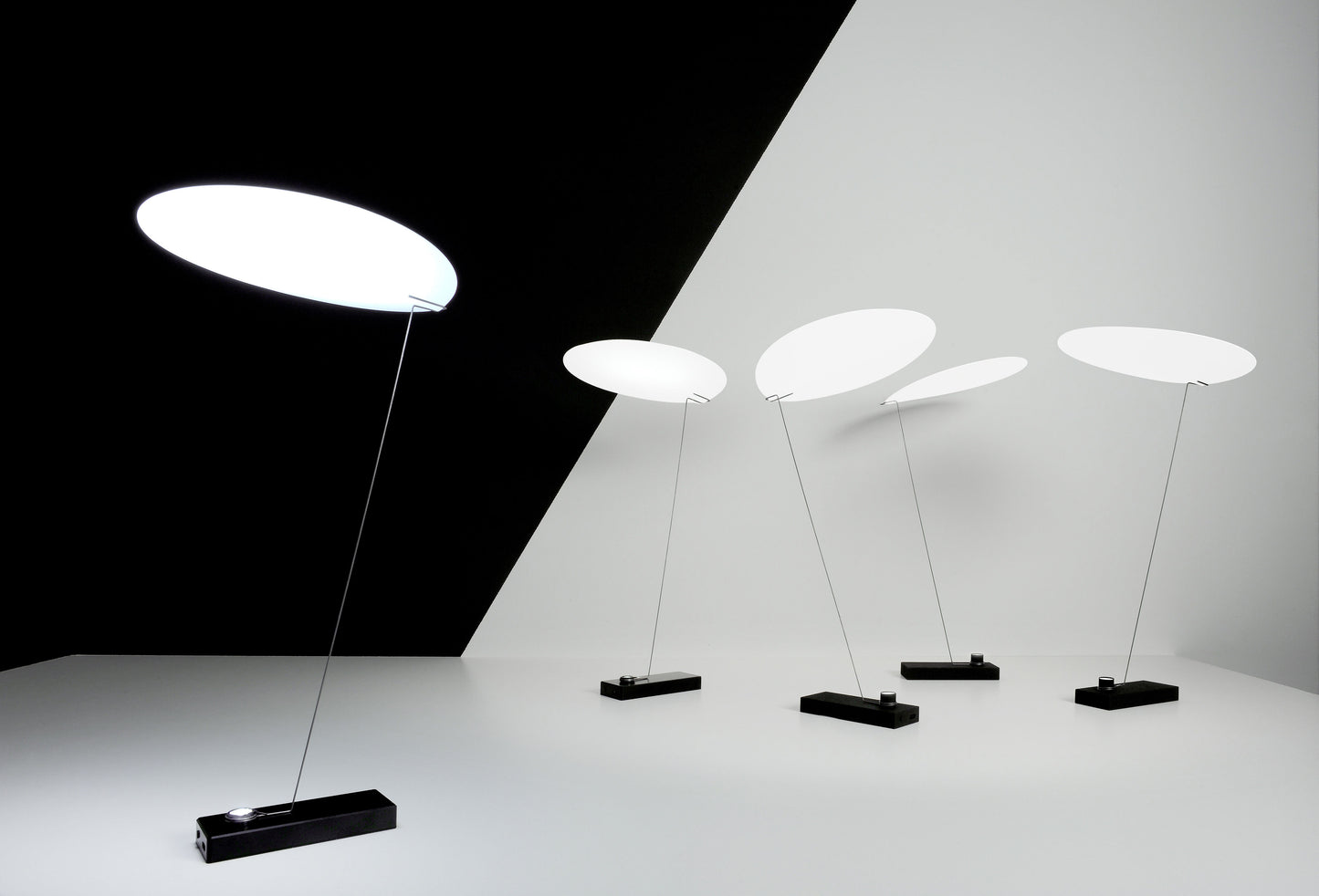 Koyoo est un petit objet léger portable. Seulement tenu par un ressort en fil de fer, un cercle lumineux surplombe un pied noir étroit. La source lumineuse est intégrée dans le pied. La source LED éclaire parfaitement le cercle. Utilisée sur une table, la source lumineuse se trouve en dessous du niveau des yeux, ce qui rend la lumière très agréable et relaxante pour de beaux moments.