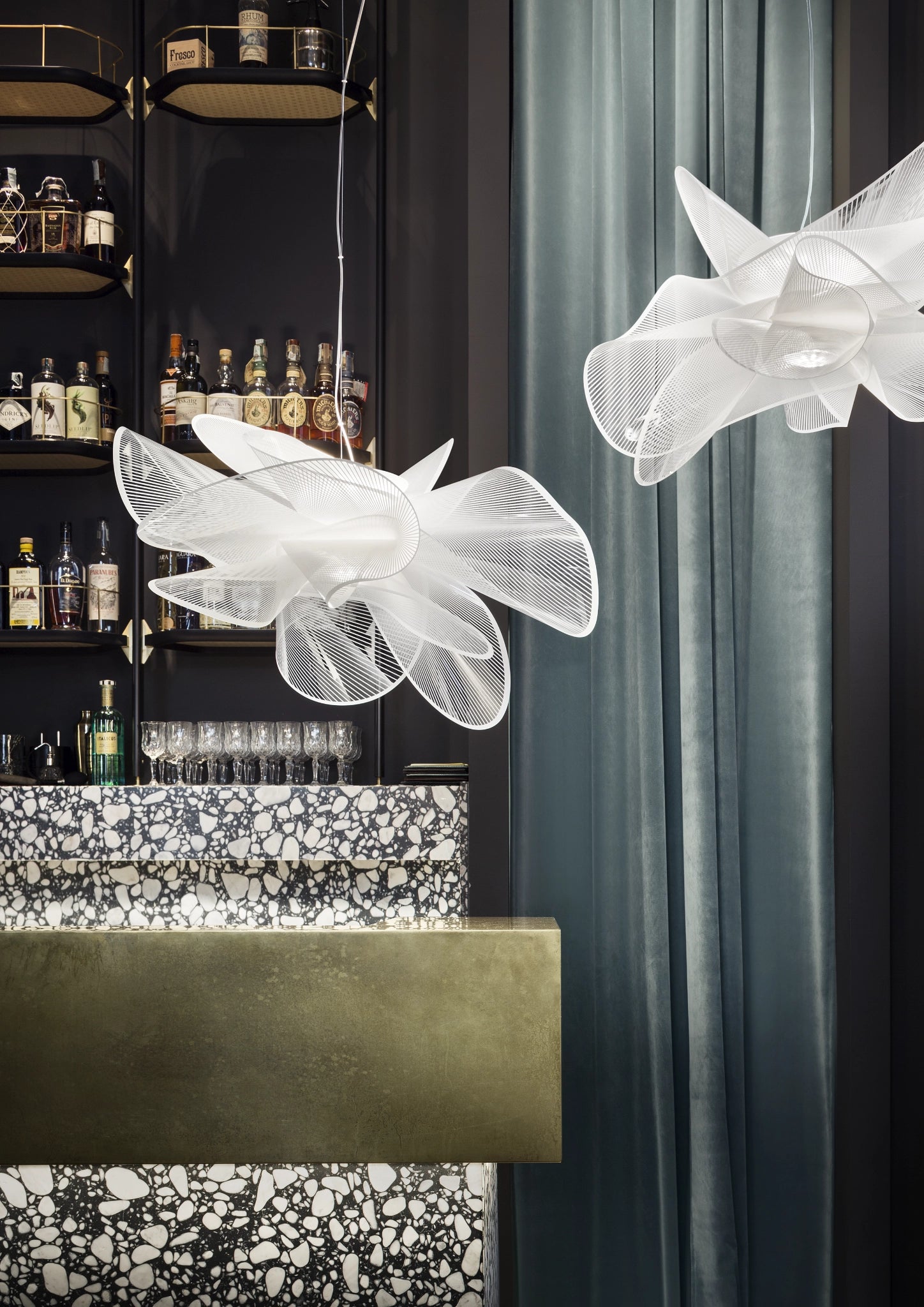 Inspirée du mouvement aérien d’une danseuse étoile, la suspension La Belle Étoile S séduit par ses courbes légères et son design contemporain ultra-léger, entièrement fabriqué à la main dans les ateliers de Slamp. Son format compact en fait une solution idéale pour les espaces intimistes comme une entrée, un coin lecture ou une chambre.