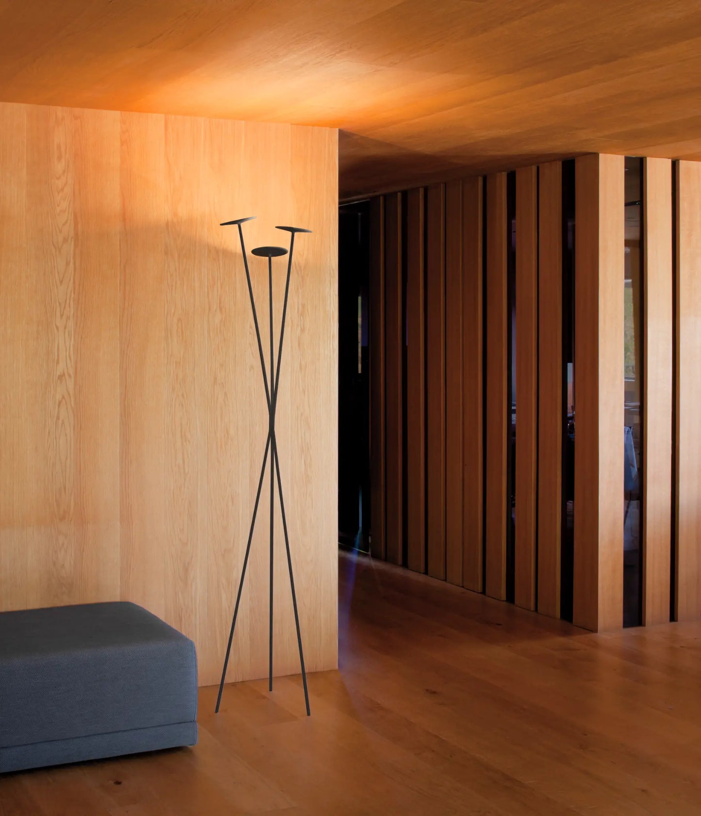 Le lampadaire Skan, conçu par Lievore, Altherr et Molina, incarne une approche minimaliste en revenant à l’essentiel avec des formes basiques et des lignes pures. Avec ses trois points de diffusion de lumière, il offre une illumination indirecte idéale pour créer des ambiances chaleureuses et confortables.