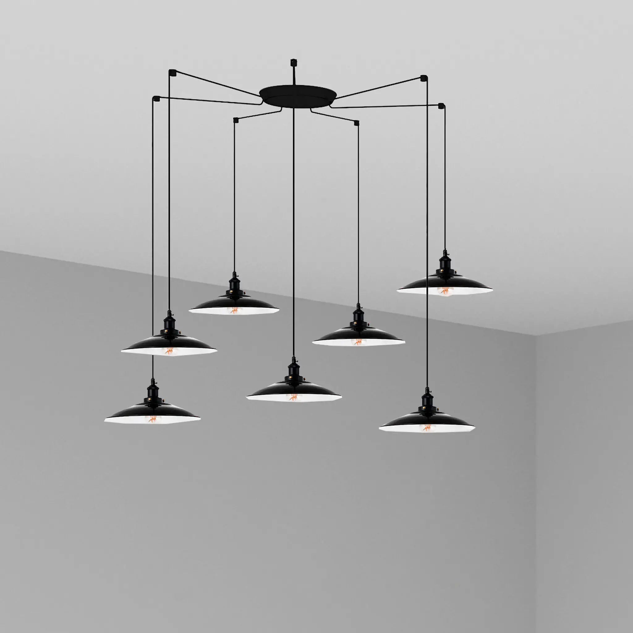 Les câbles réglables permettent d’adapter la hauteur de chaque suspension pour créer un effet visuel dynamique et sur mesure. Cette version à sept lumières garantit une diffusion lumineuse généreuse et homogène. Disponible dans d'autres coloris, LANG offre une solution décorative aussi fonctionnelle qu’élégante. Ampoules E27 non incluses pour vous permettre de personnaliser l’ambiance selon vos envies.