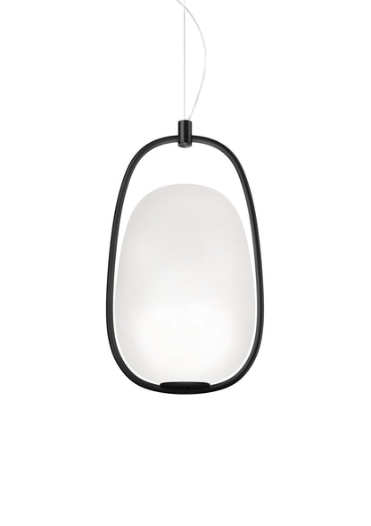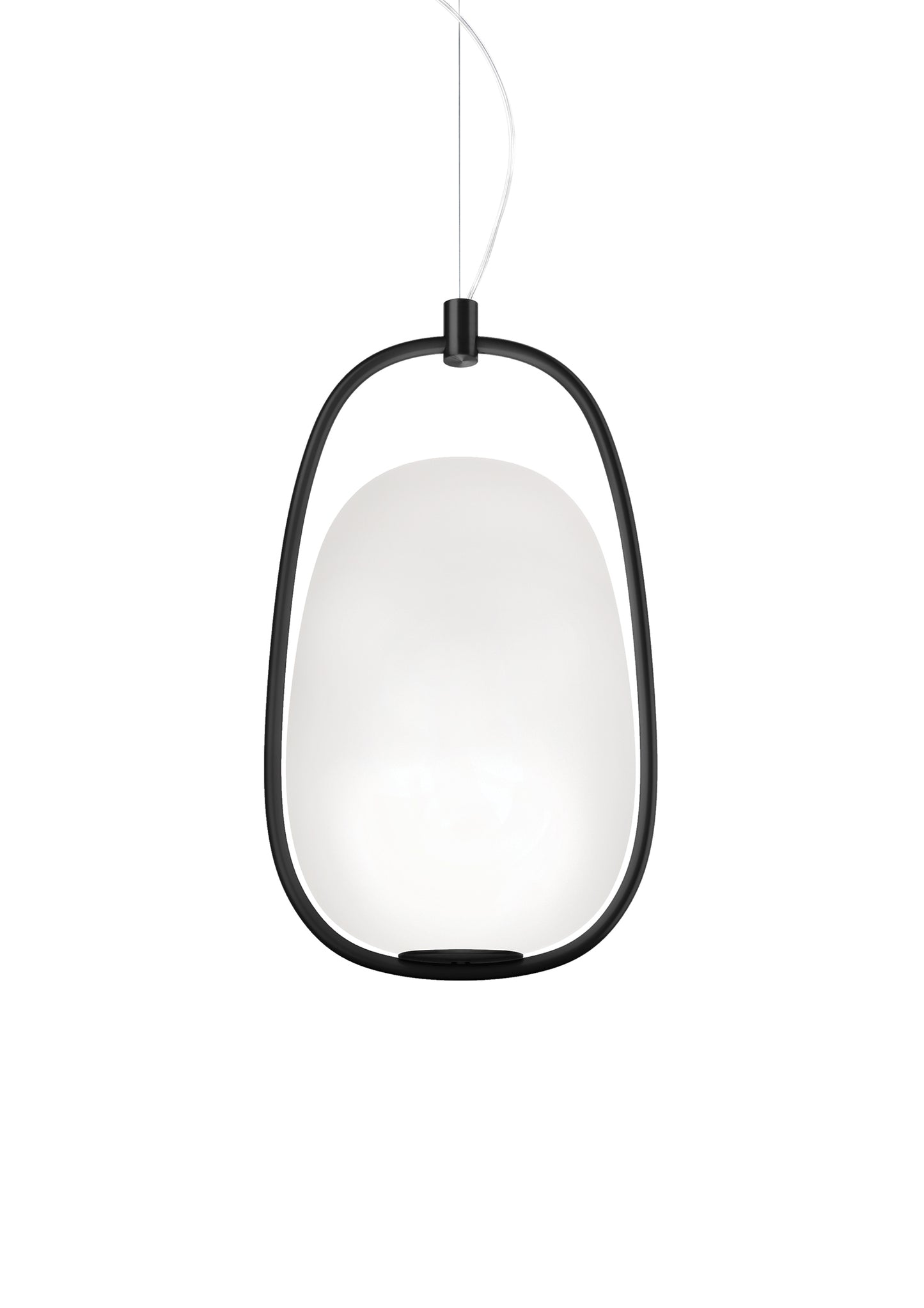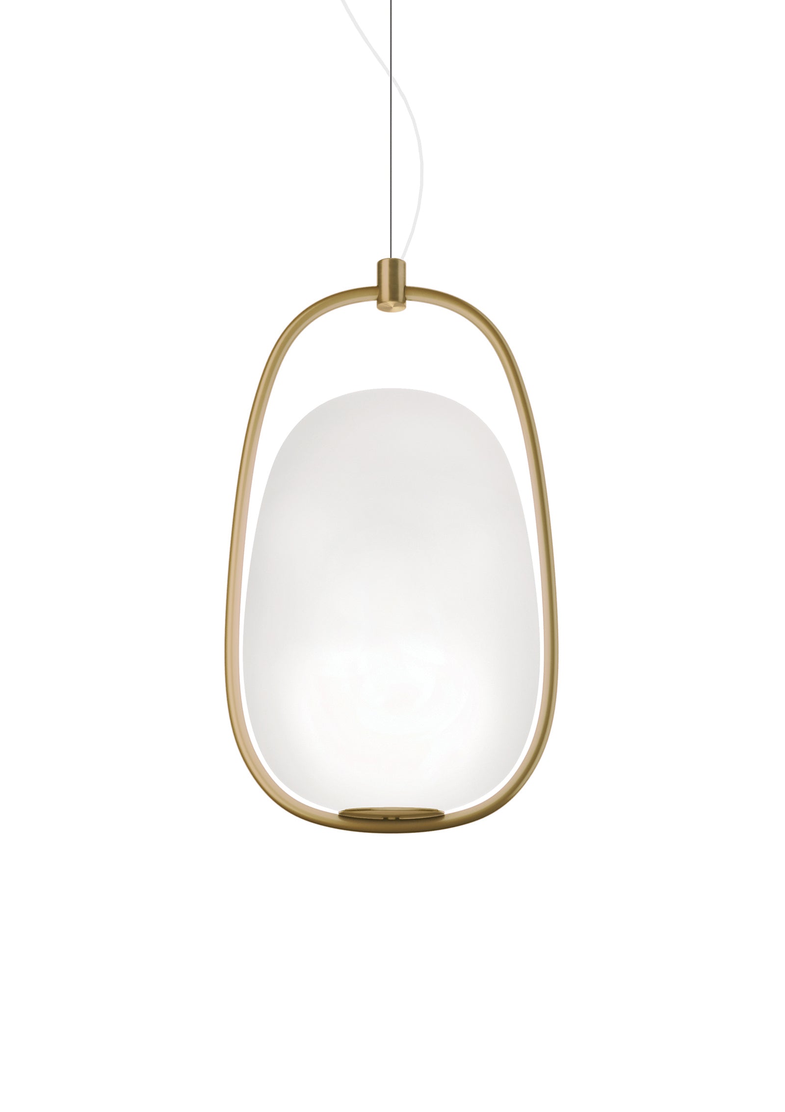 La suspension Lanna, aux formes douces et délicates, diffuse parfaitement la lumière grâce à son verre blanc. Noire, elle sera graphique, dorée elle sera plus discrète.