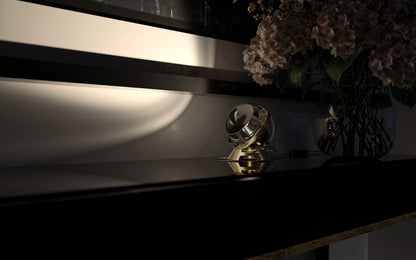La lampe Limbus Eye de Lumina est une création du designer Emanuele Ricci, combinant design minimaliste et fonctionnalité pratique. Cette lampe de table se distingue par son diffuseur sphérique, encadré d'une bande métallique, qui évoque une étoile lumineuse. La lumière LED intégrée, orientable grâce à une base pivotante, permet d'ajuster le faisceau selon vos besoins. Disponible avec une lumière chaude (2700K) ou légèrement plus blanche (3000K), elle offre une très bonne luminosité tout en consommant très peu, vous assurant ainsi efficacité énergétique et durabilité. Son esthétique épurée et sa qualité de fabrication en font un choix idéal pour les intérieurs modernes, que ce soit dans un salon, un bureau ou une chambre.