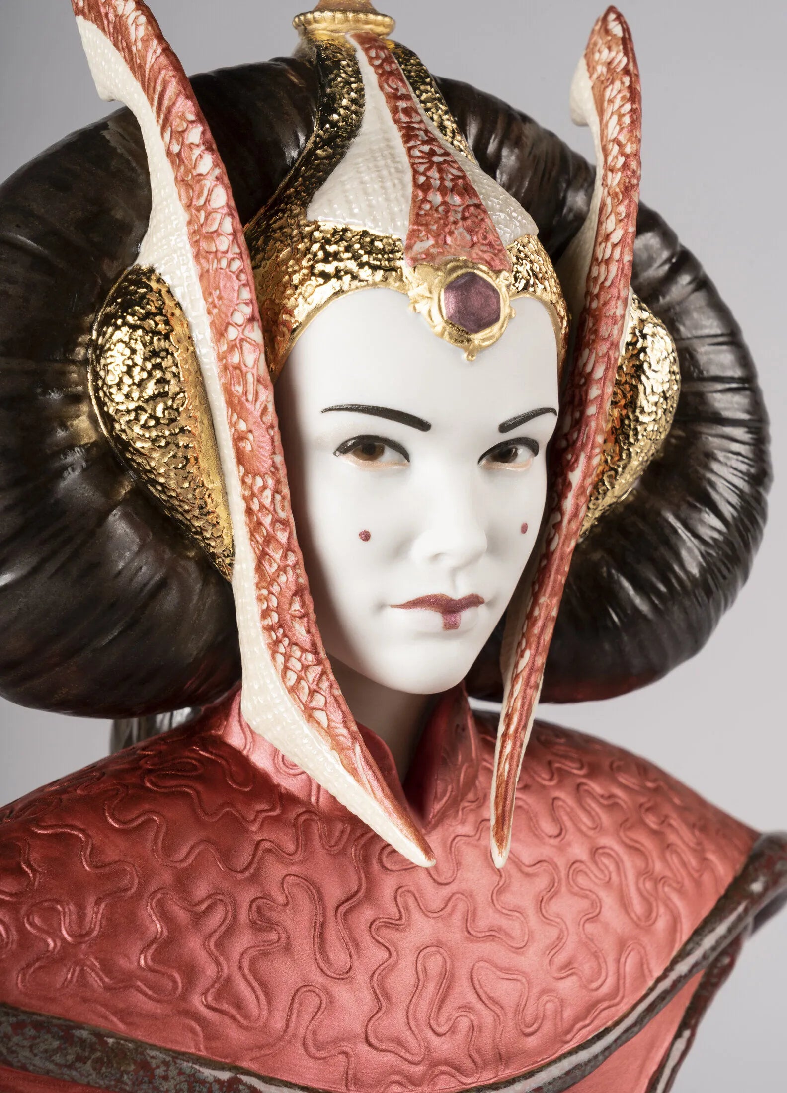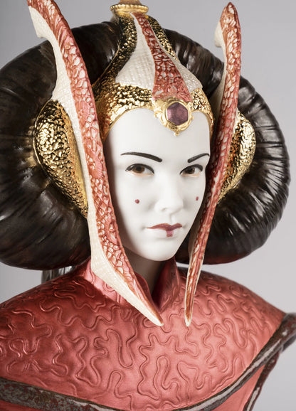 La reine Amidala, remarquable par ses couleurs, ses émaux et son délicat lustre doré, décrit le personnage très admiré de la saga vêtue de sa robe de cérémonie de la salle du trône, l'une des robes les plus somptueuses de sa garde-robe royale. Une édition limitée de seulement 1000 unités incontournables pour les amateurs de Star Wars fabriqués à la main en Espagne.