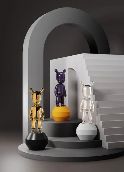 Inattendu, captivant, unique, The Guest Little est un personnage révolutionnaire en porcelaine imaginé par Jaime Hayon pour l'atelier Lladro. Plus récent, et dans la tendance du moment, celui-ci est doré brillant sur un socle noir mat. So chic!