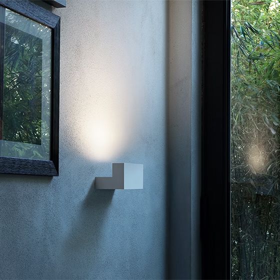 Applique à lumière indirecte. Corps en aluminium extrudé peint ou anodisé. Filtres latéraux en fonte d'aluminium repris à 45° sur contrôle numérique pour un assemblage parfait avec le corps de la lampe. Diffuseurs en PMMA moulé par injection finition photogravée. Attache murale en PA66 moulé par injection. Alimentation multi tension intégrée dans le corps de l'appareil.