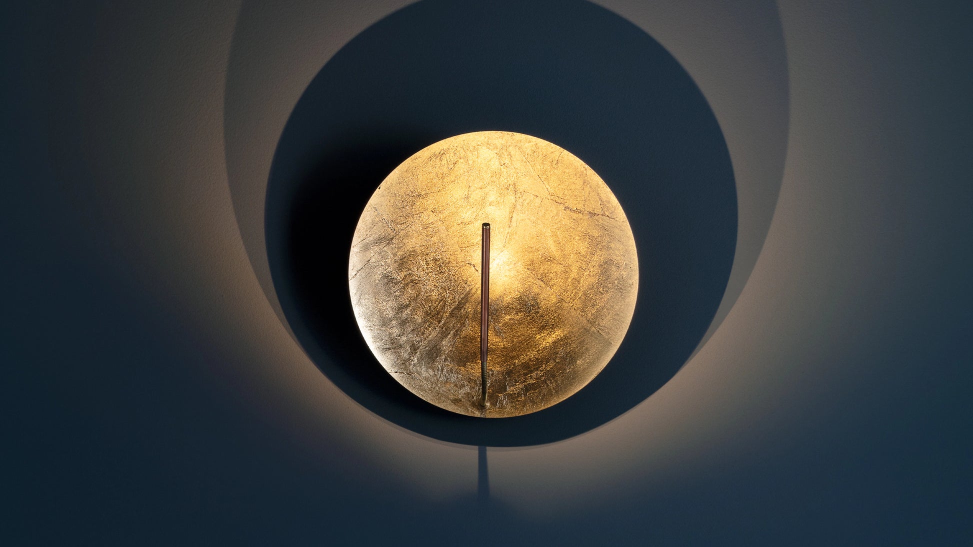 Luci d’Oro naît comme une réflexion sur la couleur de la lumière : la lumière dorée du soleil, du feu ; des lumières chaudes, où le concept de réfraction commence à prendre forme dans l’esprit d’Enzo Catellani, qui l’appliquera souvent à d’autres créations.