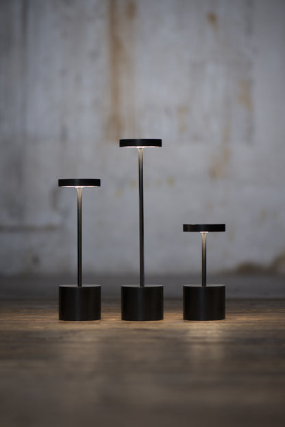 A poser sur une table, pour un dîner romantique, ou dans une bibliothèque pour une lumière d'ambiance, la lampe sans fil Luxciole et élégante et pratique.