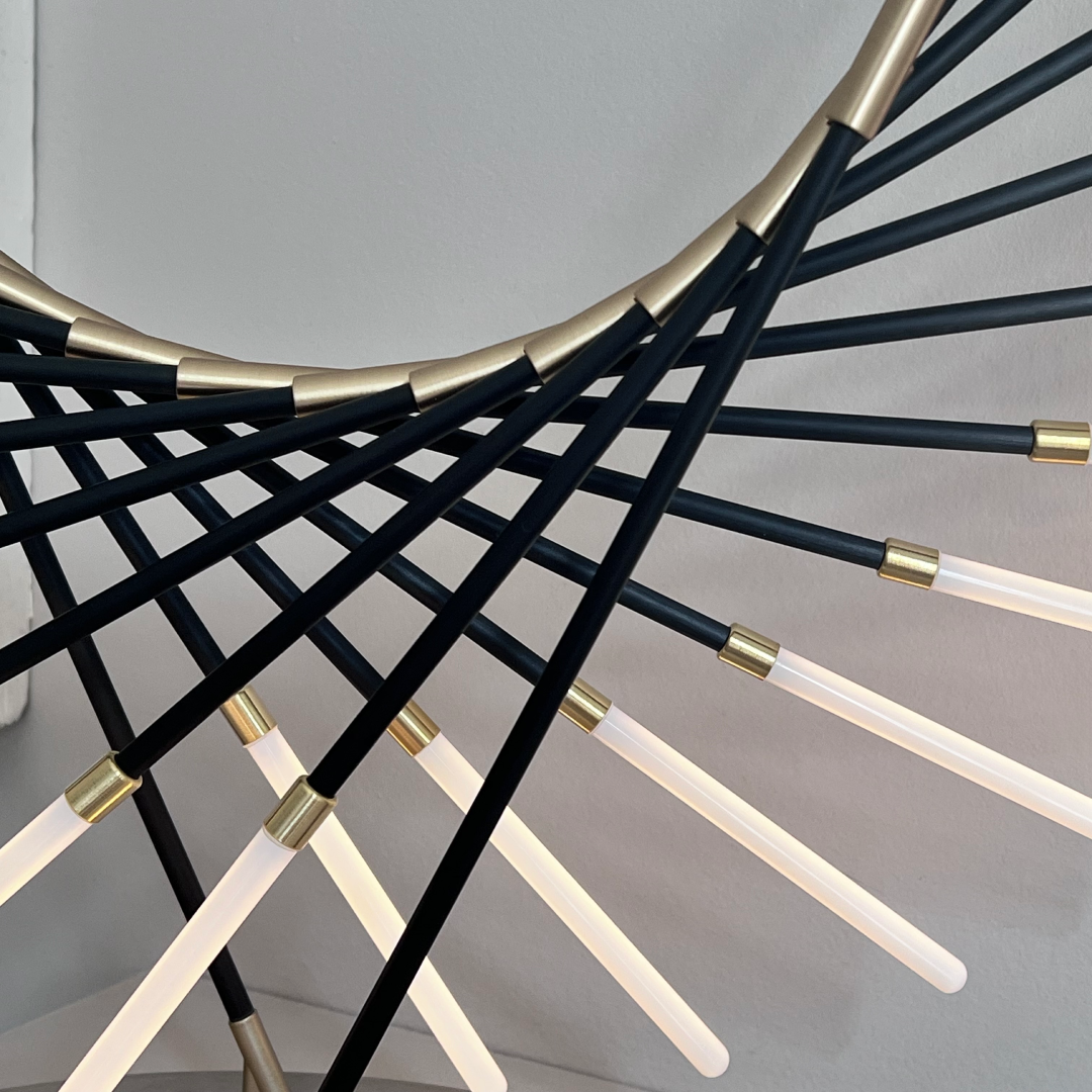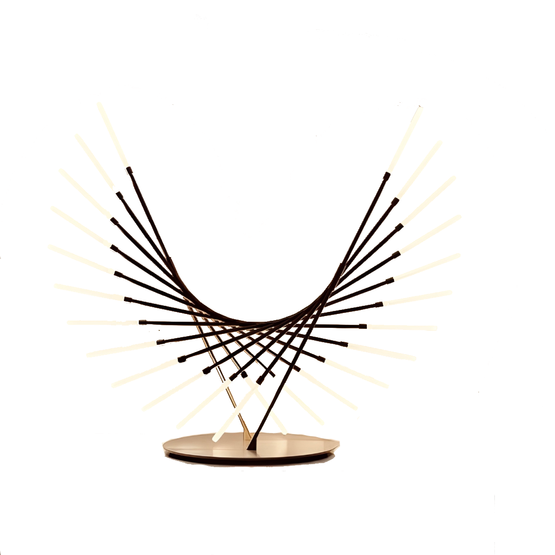 La lampe à poser M101, imaginée par Henri Rursztyn, complète la collection qui compte déjà suspensions et appliques. Inspirée d’une galaxie spirale aux rayons délicats, elle évoque un voyage au cœur de la constellation de la Grande Ourse.