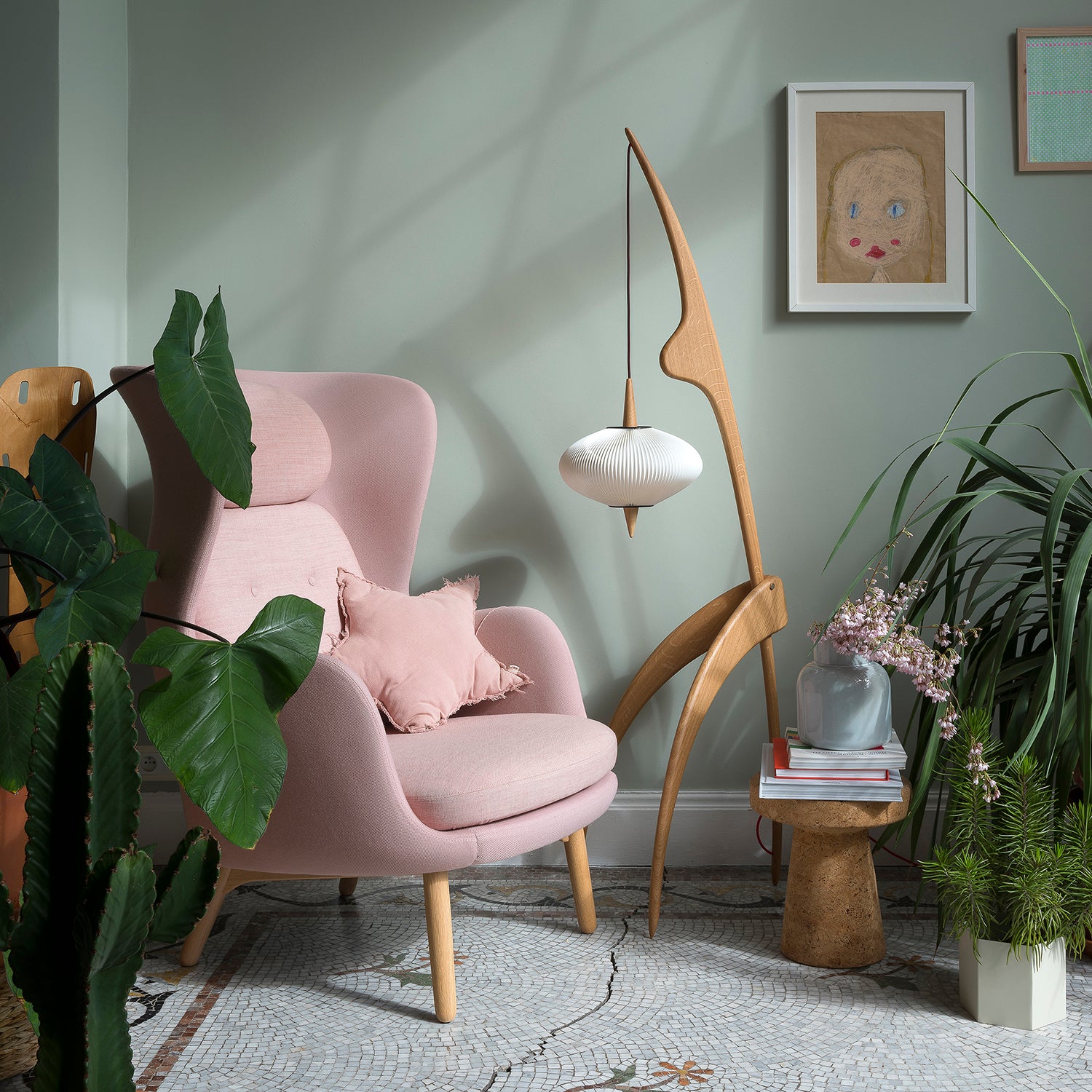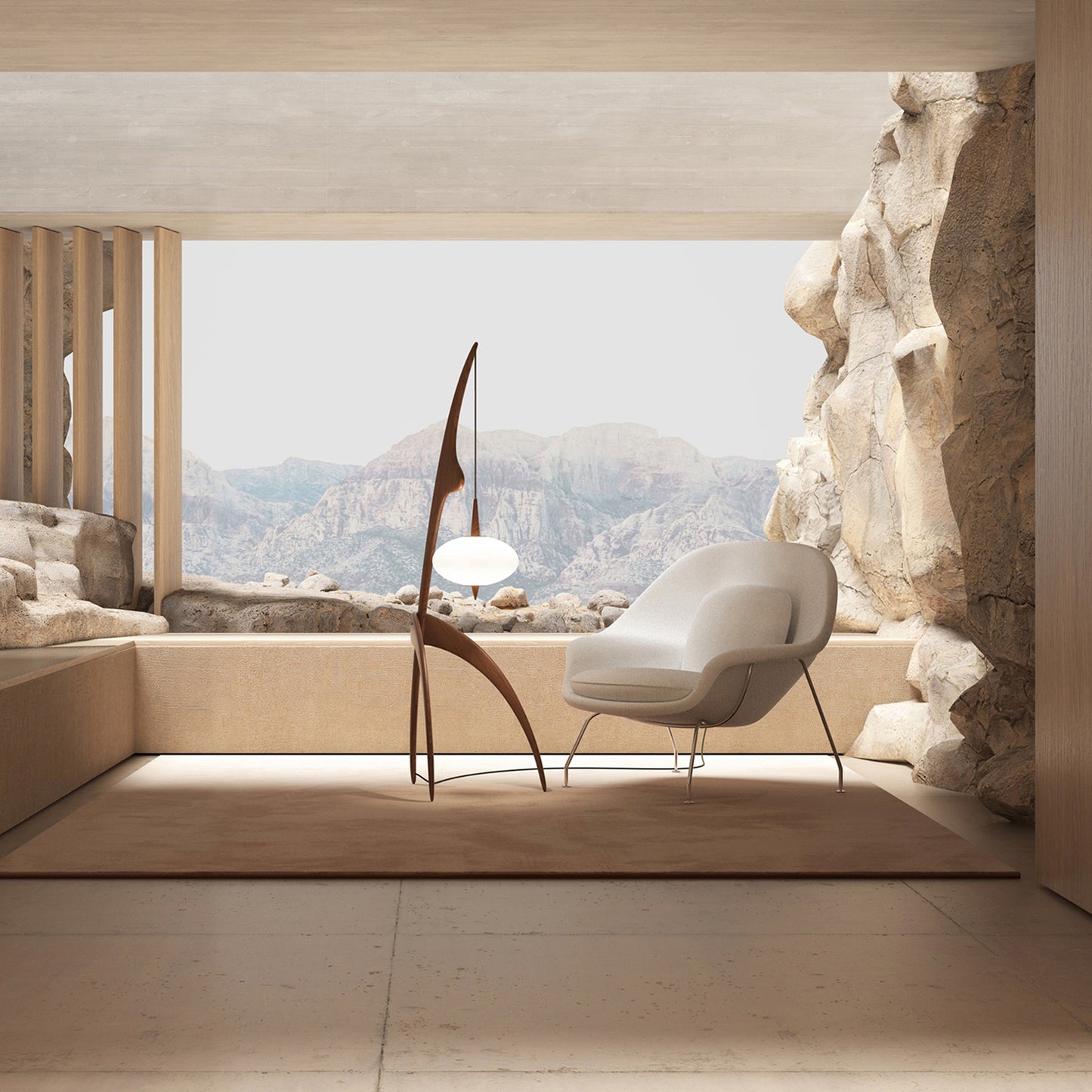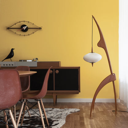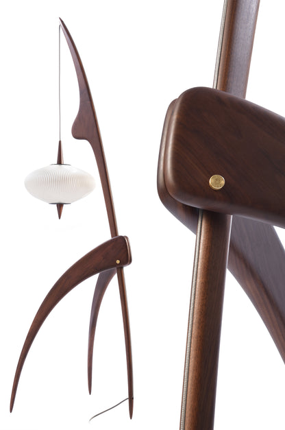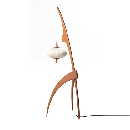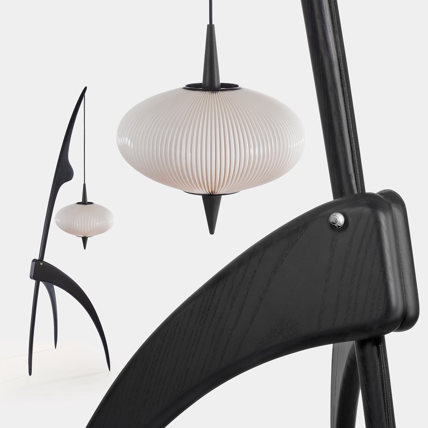 S’il y a un modèle qui représente à lui seul l’avant-gardisme de Rispal, c’est sans conteste la « Mante religieuse », un nom qui fut donné au fil du temps par les antiquaires et les décorateurs. En réalité, les produits Rispal ne portaient pas de noms mais des références. La « mante religieuse » est très souvent attribuée à un certain Jean Rispal. Ceci n’est que pure fiction, les luminaires Rispal étant dessinés par un bureau de style intégré au sein de l’entreprise et dirigé par François Rispal (le fils du fondateur de l’entreprise Rispal). Créé en 1950, le luminaire N° 14.950 fut rapidement baptisé la “mante religieuse” en raison de sa ressemblance avec l’insecte. Dessiné par le bureau de style de l’ entreprise RISPAL, elle ne fit cependant sa première apparition qu’en 1952 à Paris, lors du 36 ème Salon des Artistes décorateurs. L’ acétate de cellulose est un « bio-plastique » fabriqué a partir de fibre de coton ou de pulpe de bois. Ce matériau renouvelable est bio-dégradable et n’utilise pas de pétrole pour sa fabrication. iIl est le même que celui utilisé à l’époque. La technique utilisée pour la mise en forme de cet abat-jour est un procédé unique developpé par la Maison Rispal dans les années cinquante.