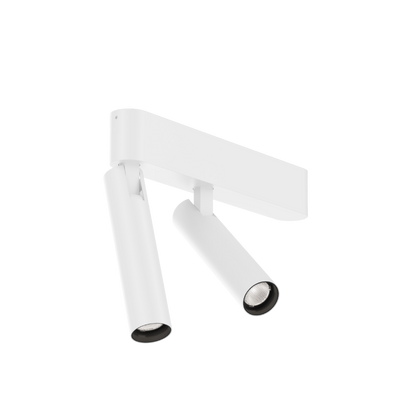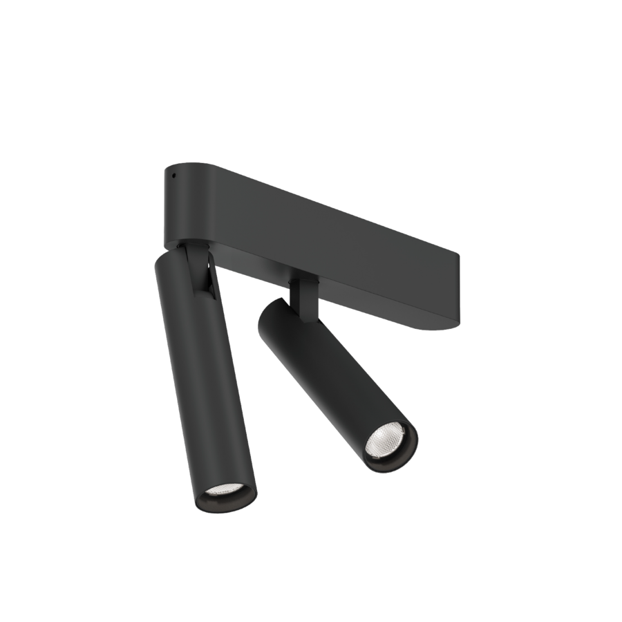 Plafonnier avec 2 spots en aluminium moulé sous pression. Il est sobre et à la fois décoratif et vous permettra d'éclairer un dégagement, un tableau, un objet ou un dressing. Il est inclinable à 90° et rotatif à 350°. La source lumineuse est remplaçable par un professionnel autorisé et l'appareillage de commande est remplaçable par l'utilisateur final. Cette applique est également disponible en 3000K - Nous contacter.