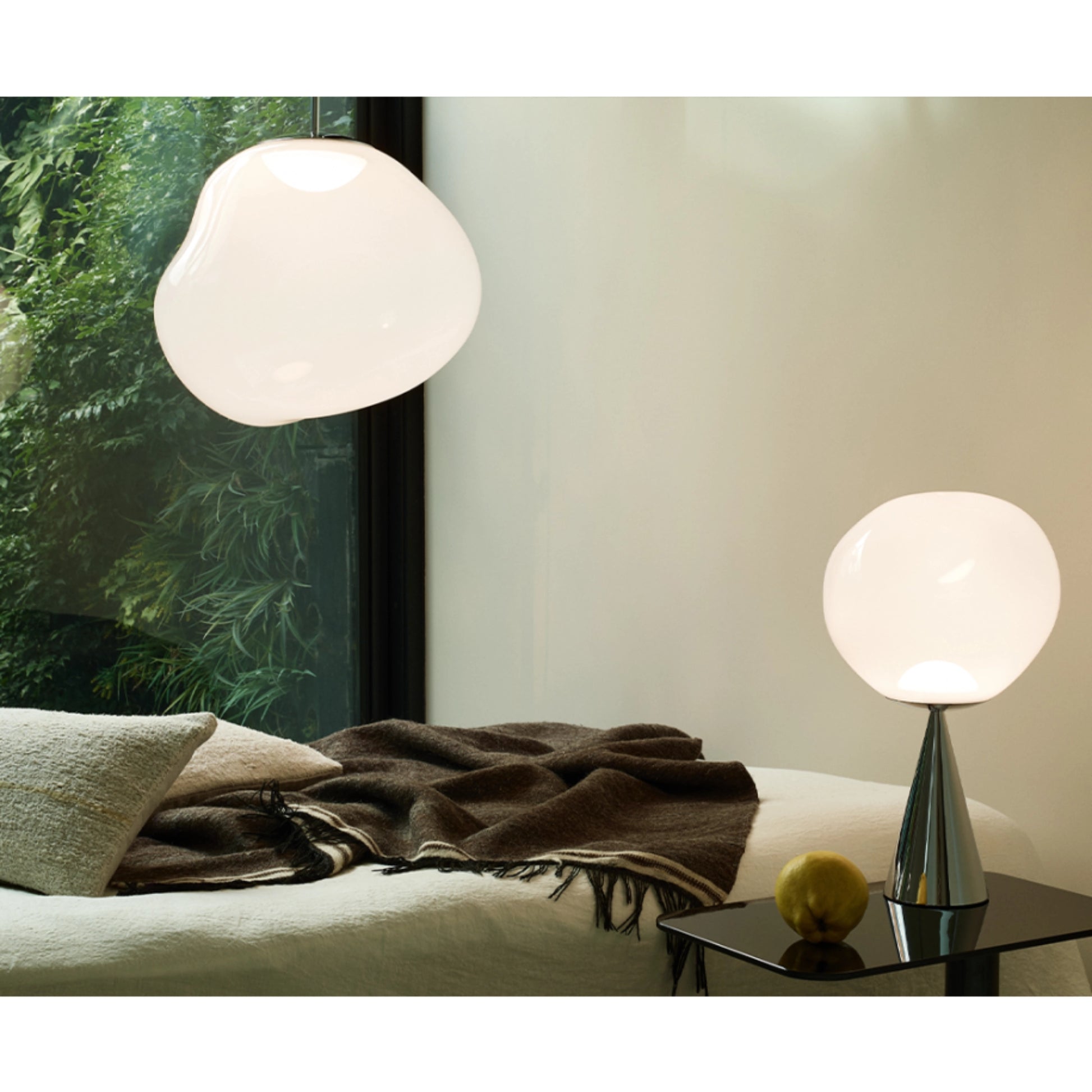 Les pièces de la collection Melt arborent un très beau globe lumineux déformé qui crée un effet de verre soufflé en fusion saisissant. Translucide lorsqu’il est allumé et affichant une finition miroir lorsqu’il est éteint, il émet une lumière attirante et légèrement hallucinogène. La famille Melt est désormais disponible avec un nouvel anneau LED Tom Dixon sur mesure.