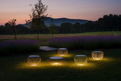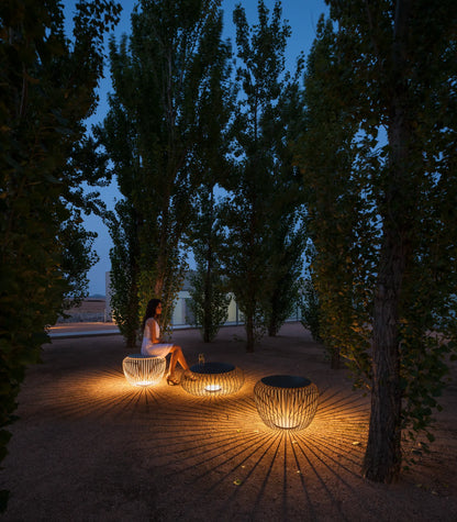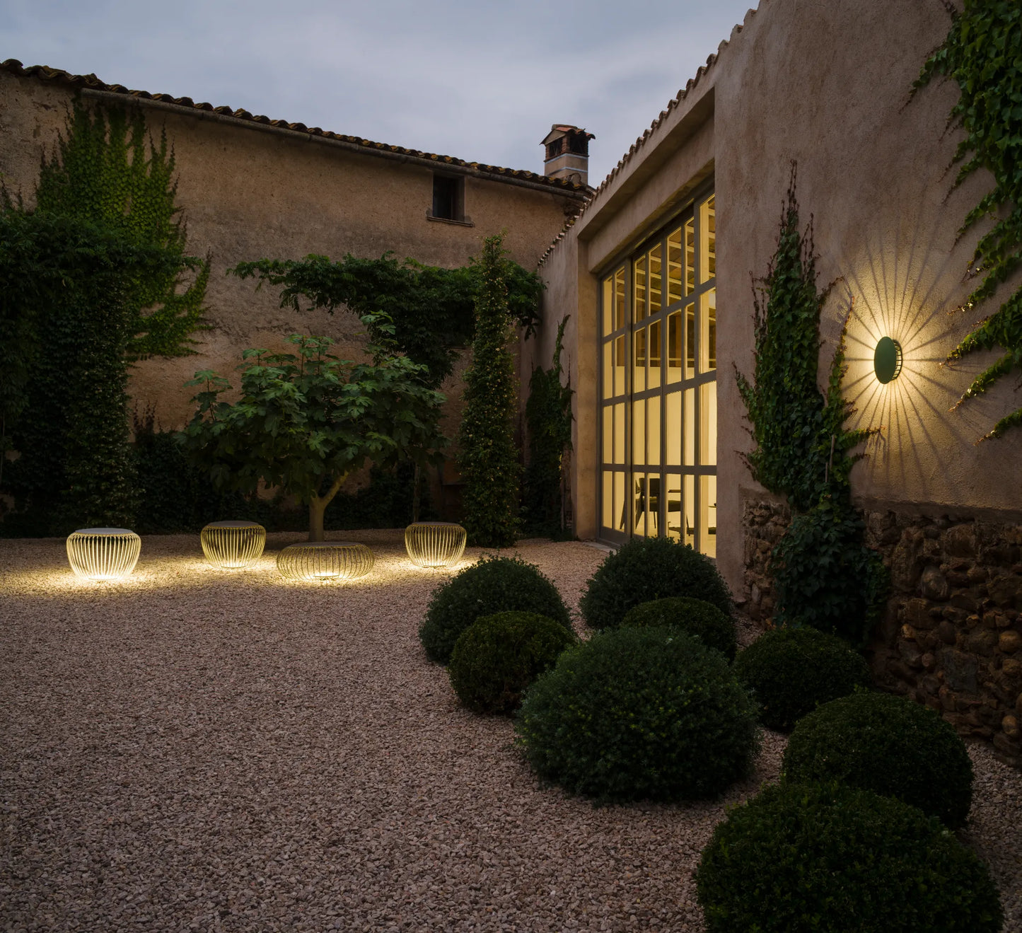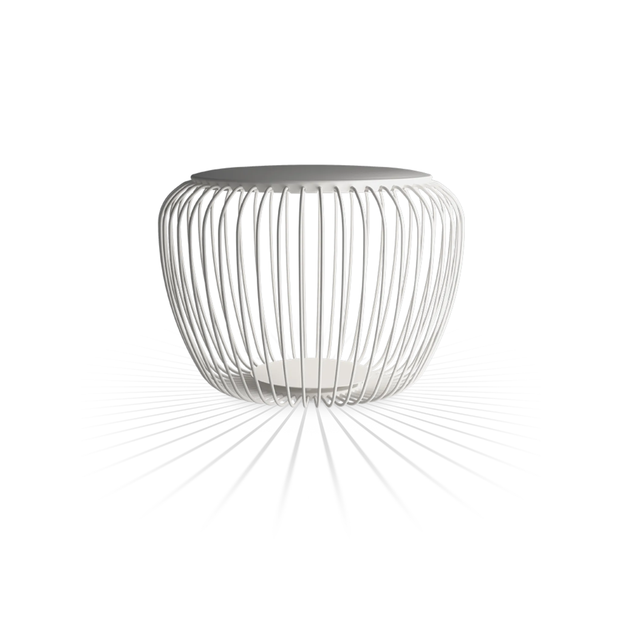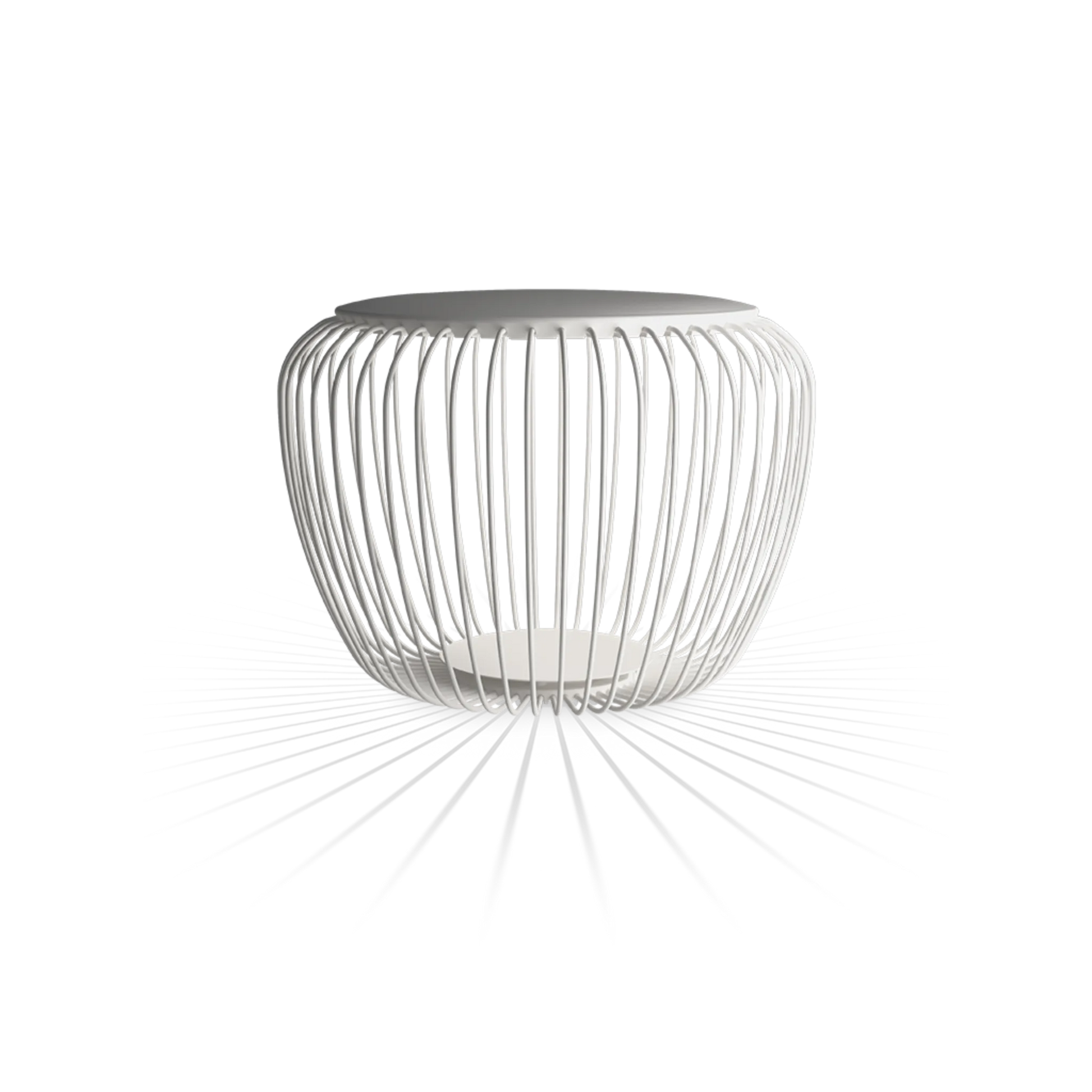 La collection de lampes Meridiano, conçue par Jordi Vilardell & Meritxell Vidal pour Vibia, projette une lumière confortable qui joue avec les formes et les ombres pour créer un effet lumineux magique. Les lampes d'extérieur Meridiano possèdent une double fonction : comme luminaire et comme tabouret ou table basse, et s'intègrent parfaitement dans les espaces ouverts, tels que jardins, patios ou pourtours de piscines. Les luminaires Meridiano disposent d'une source de lumière LED qui provient d'un point invisible situé au-dessous de l'enveloppe. La structure de baguettes en acier est disposée de manière circulaire. La lampe Meridiano est disponible en trois couleurs à choisir : laqué kaki mat, laqué blanc cassé mat et laqué vert mat.