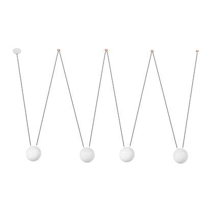 Cette suspension à quatre lumières, créée par Nahtrang, est dotée d'une structure en métal blanc mat et d'un diffuseur en verre opale. La lumière douce qui traverse le verre diffuse une chaleur agréable, apportant confort et élégance à votre intérieur.