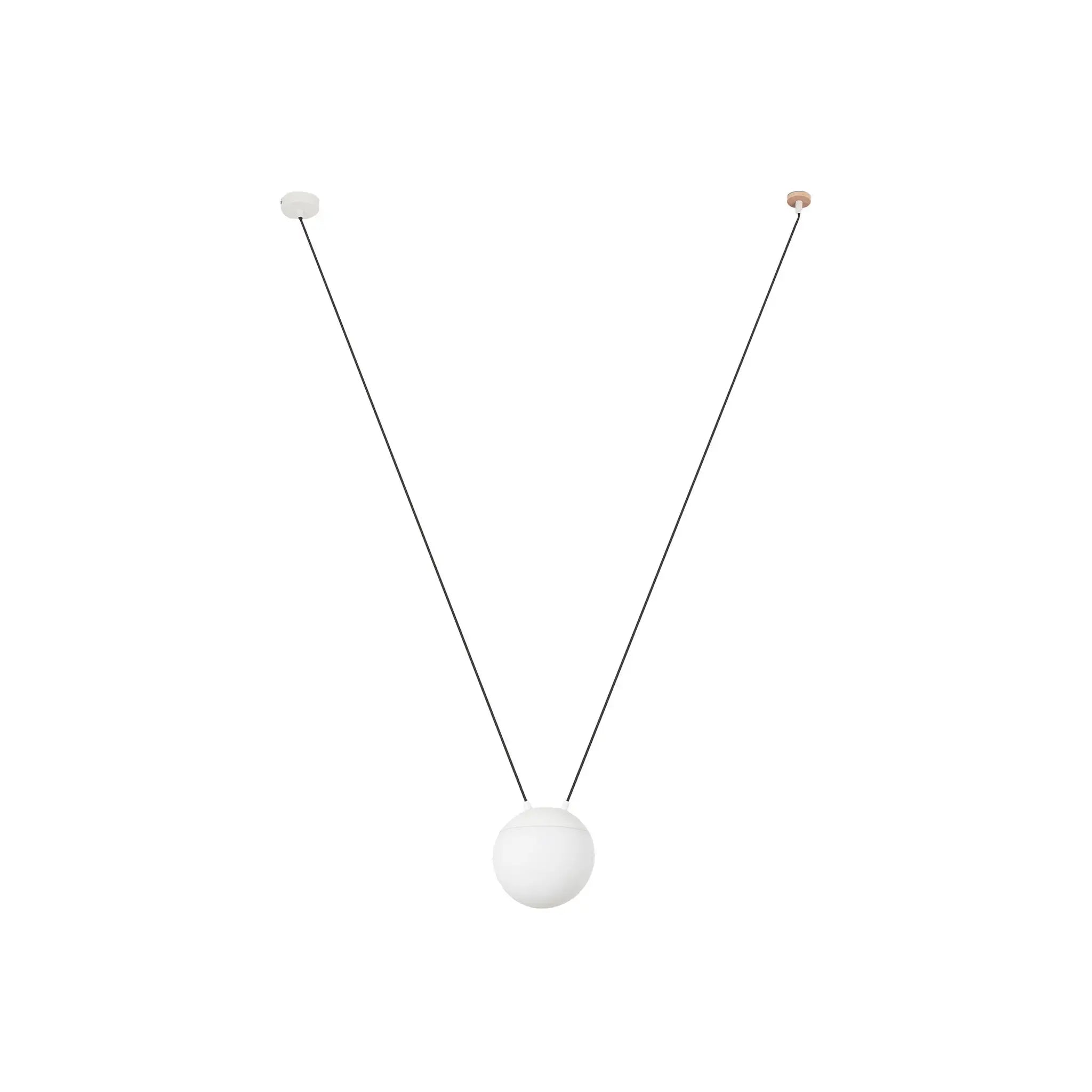 Cette suspension blanche de Nahtrang, avec une structure en métal et un diffuseur en polycarbonate opale, diffuse une lumière ambiante douce et agréable. Son crochet permet une installation simple et elle est idéale pour éclairer aussi bien les espaces contract que les intérieurs modernes. Source lumineuse E27 non incluse.