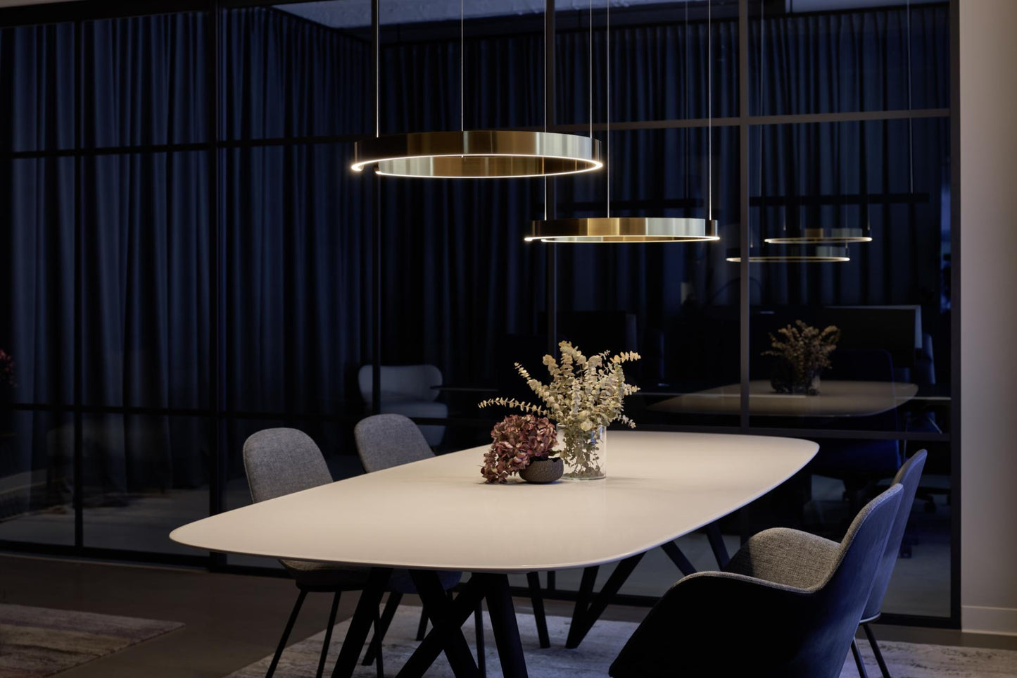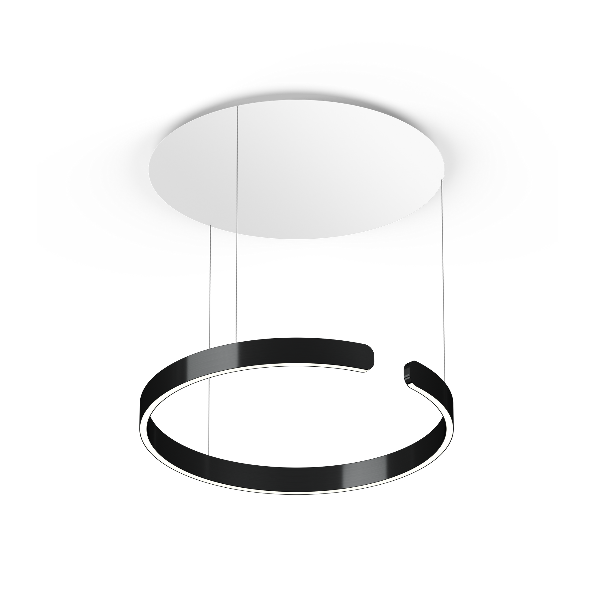 La suspension Mito fascine littéralement par ses multiples possibilités: sa hauteur se règle à la main, de 50 à 200cm, on peut éclairer uniquement vers le haut ou vers le bas ou les deux simultanément, on peut également moduler directement sur l'anneau la puissance de l'éclairage. Enfin, on peut choisir sa température de couleur, de 2700 à 4000K, en fonction des besoins.