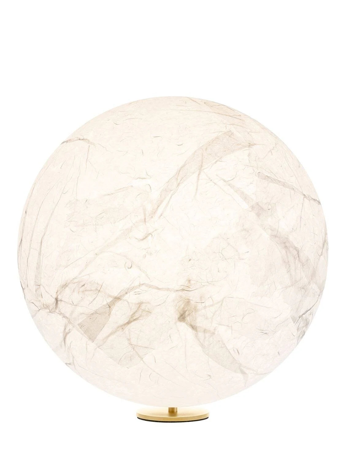 La lampe à poser en papier japonais, qui rappelle la pleine lune par sa couleur, sa forme et sa matérialité, font de cette lampe de Davide Groppi le véritable protagoniste de l'environnement tout en respectant le style et la tradition japonaise. Tout comme la lune donne à la nuit une atmosphère romantique, Davide Groppi a voulu proposer à nouveau une lumière capable de rendre la même émotion aussi à l'intérieur. La forme sphérique et la porosité du papier japonais avec ses différentes nuances de couleur sont mises en valeur par l’ampoule interne.