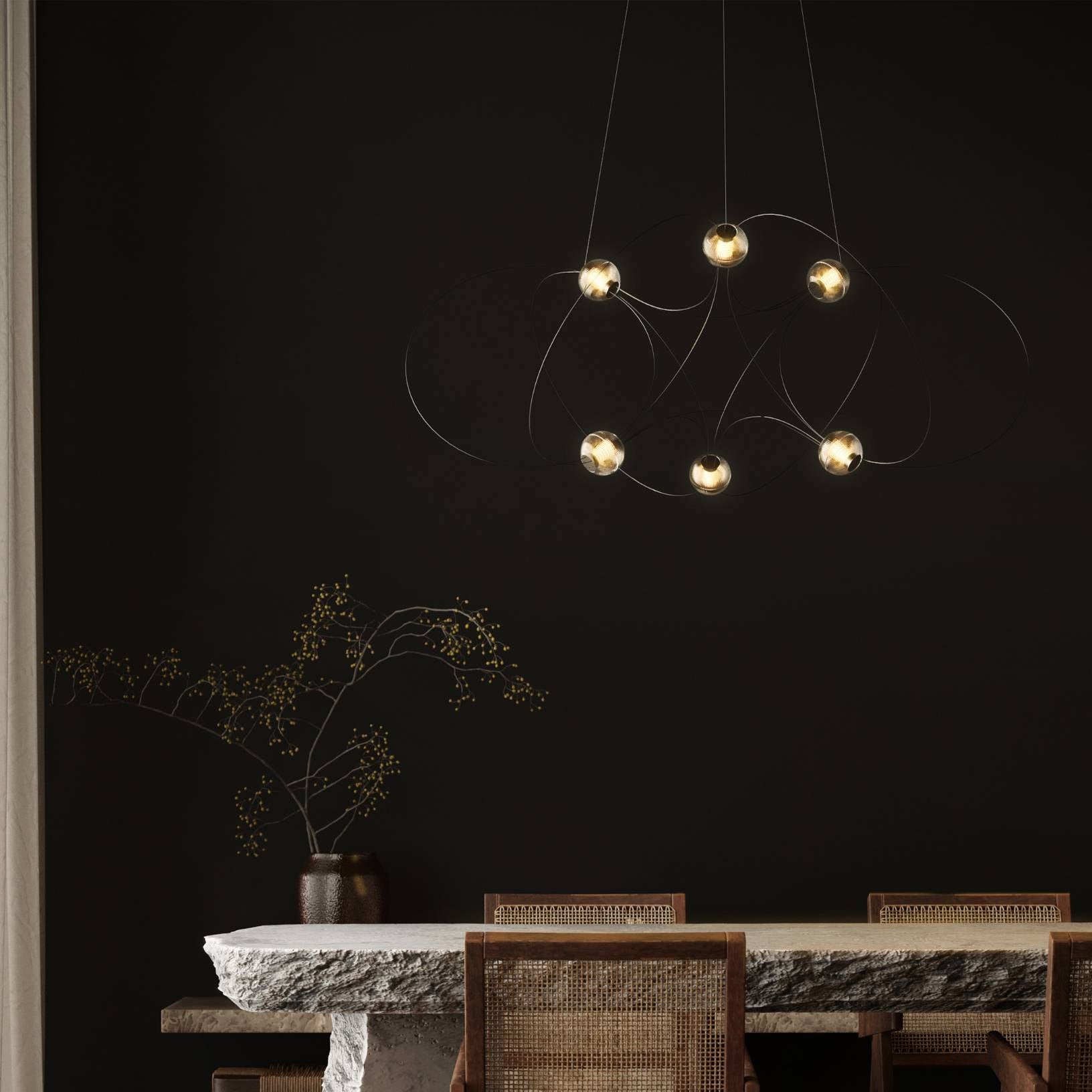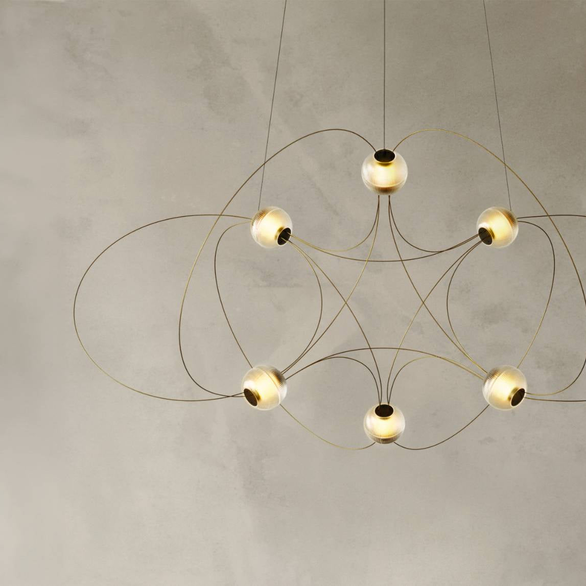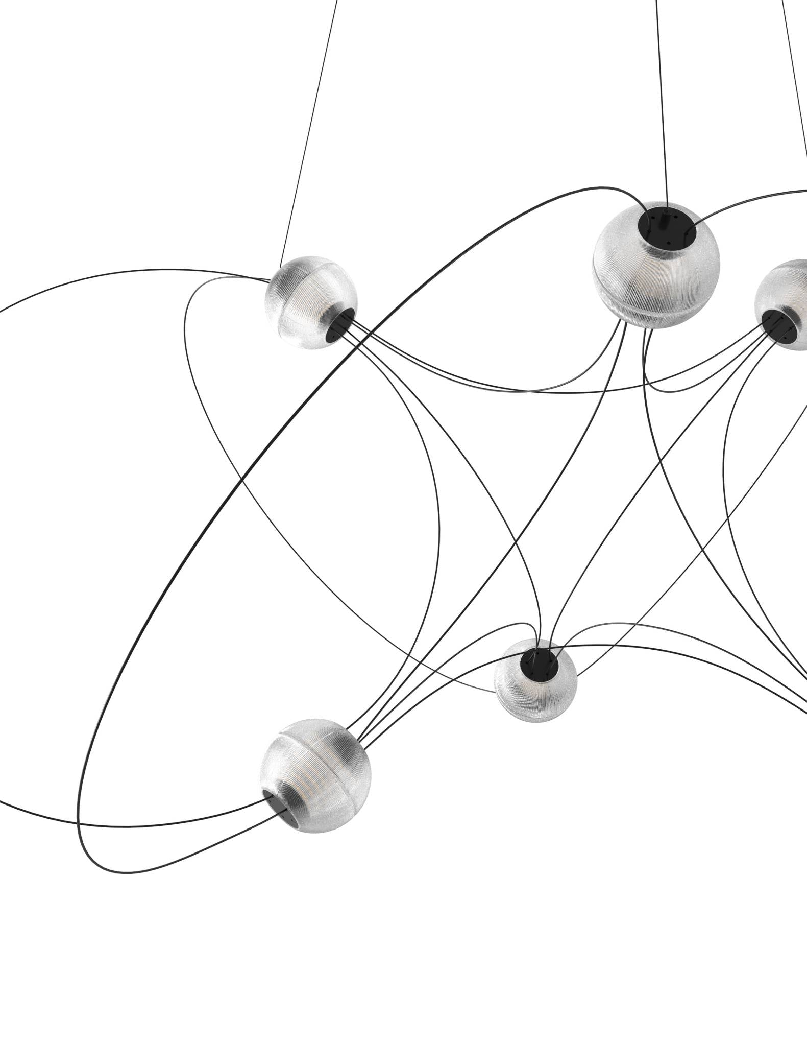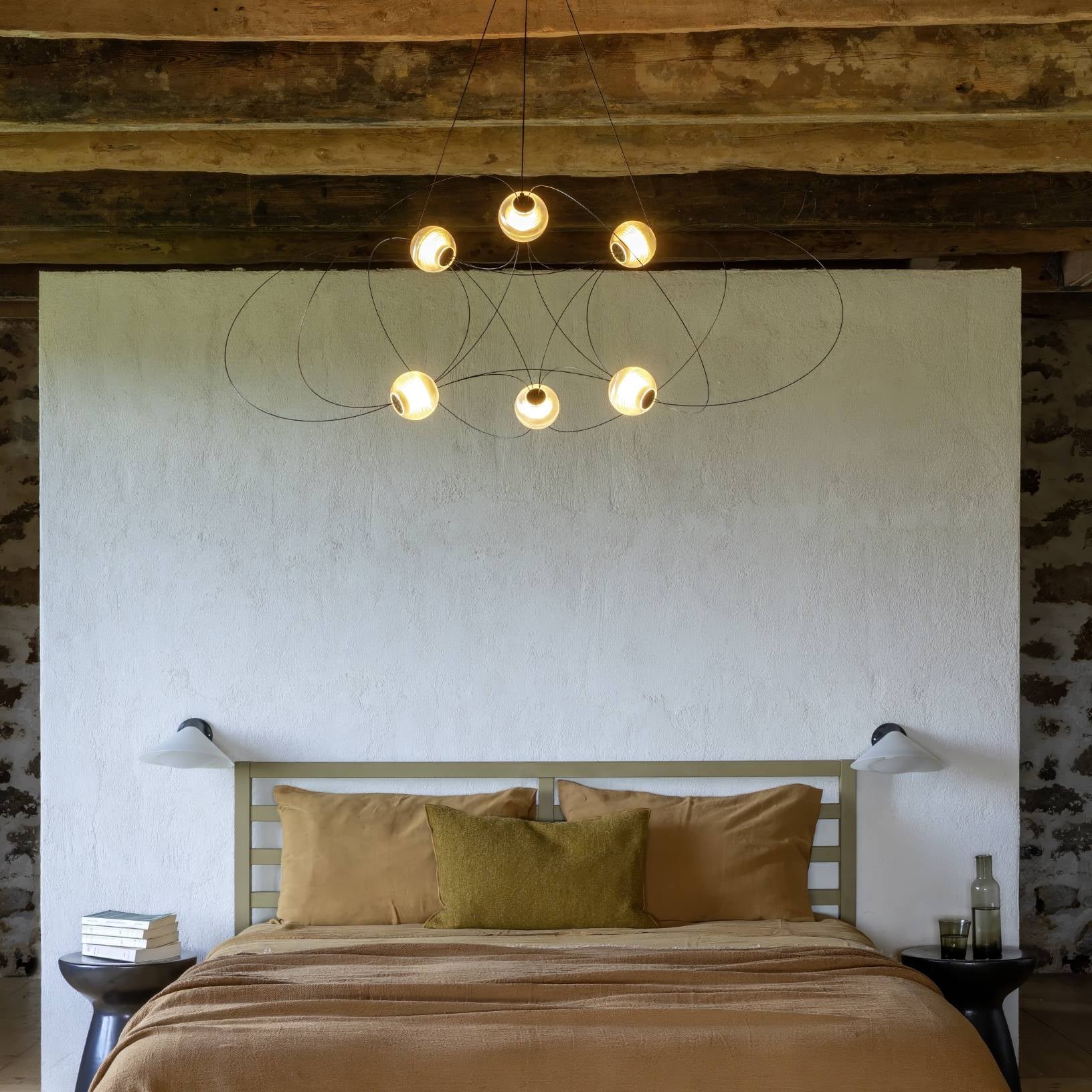 La suspension Munari 6, imaginée par Lutz Pankow, est une création lumineuse à la fois poétique et architecturale. Composée de six sphères en acrylique transparent, reliées par de fines tiges en acier à ressort, elle donne l’illusion de formes flottantes en apesanteur. Son design épuré et graphique évoque le mouvement et la légèreté. Élégante et contemporaine, elle s’intègre harmonieusement dans différents espaces, qu’ils soient résidentiels ou professionnels.