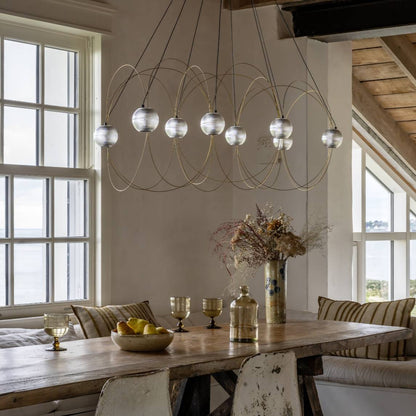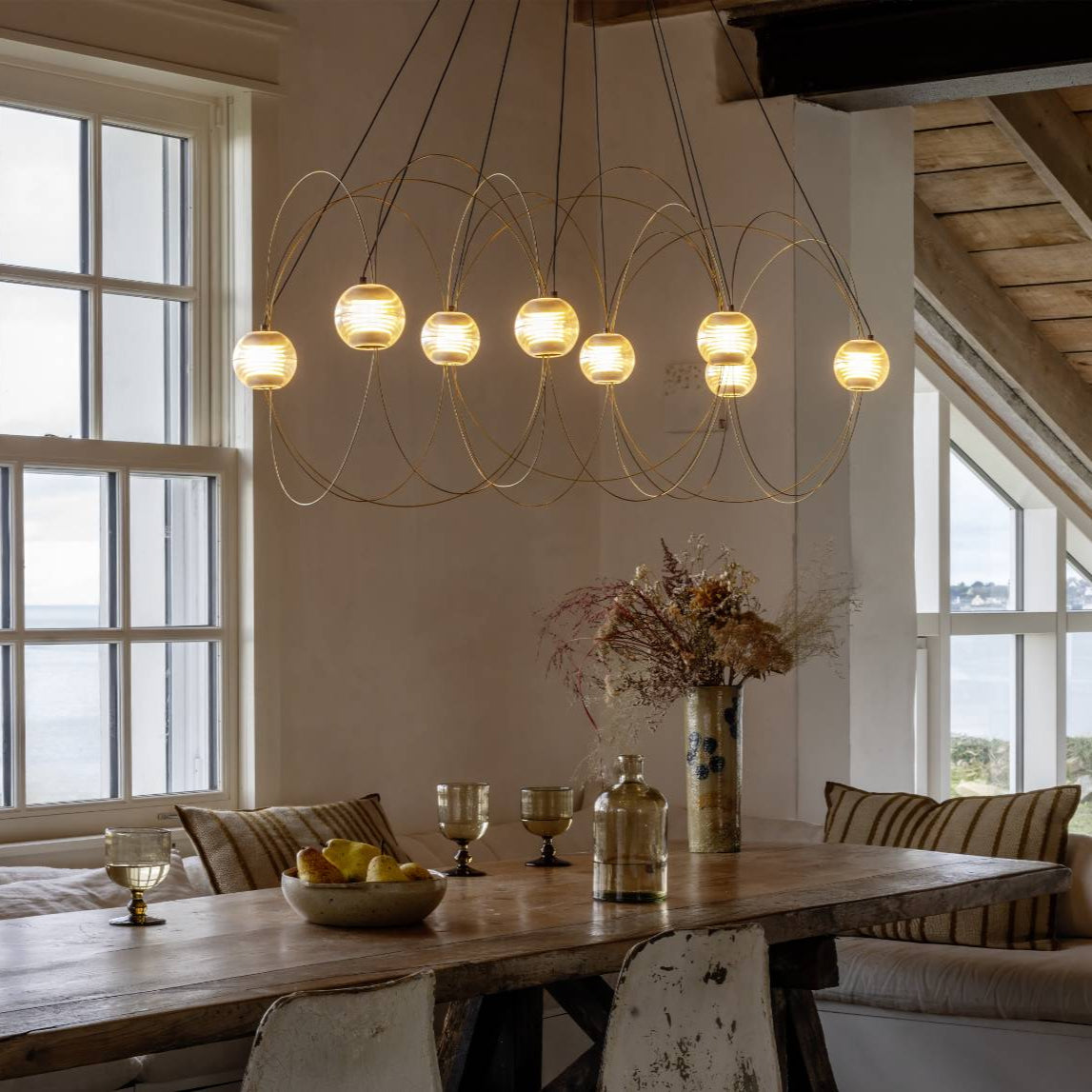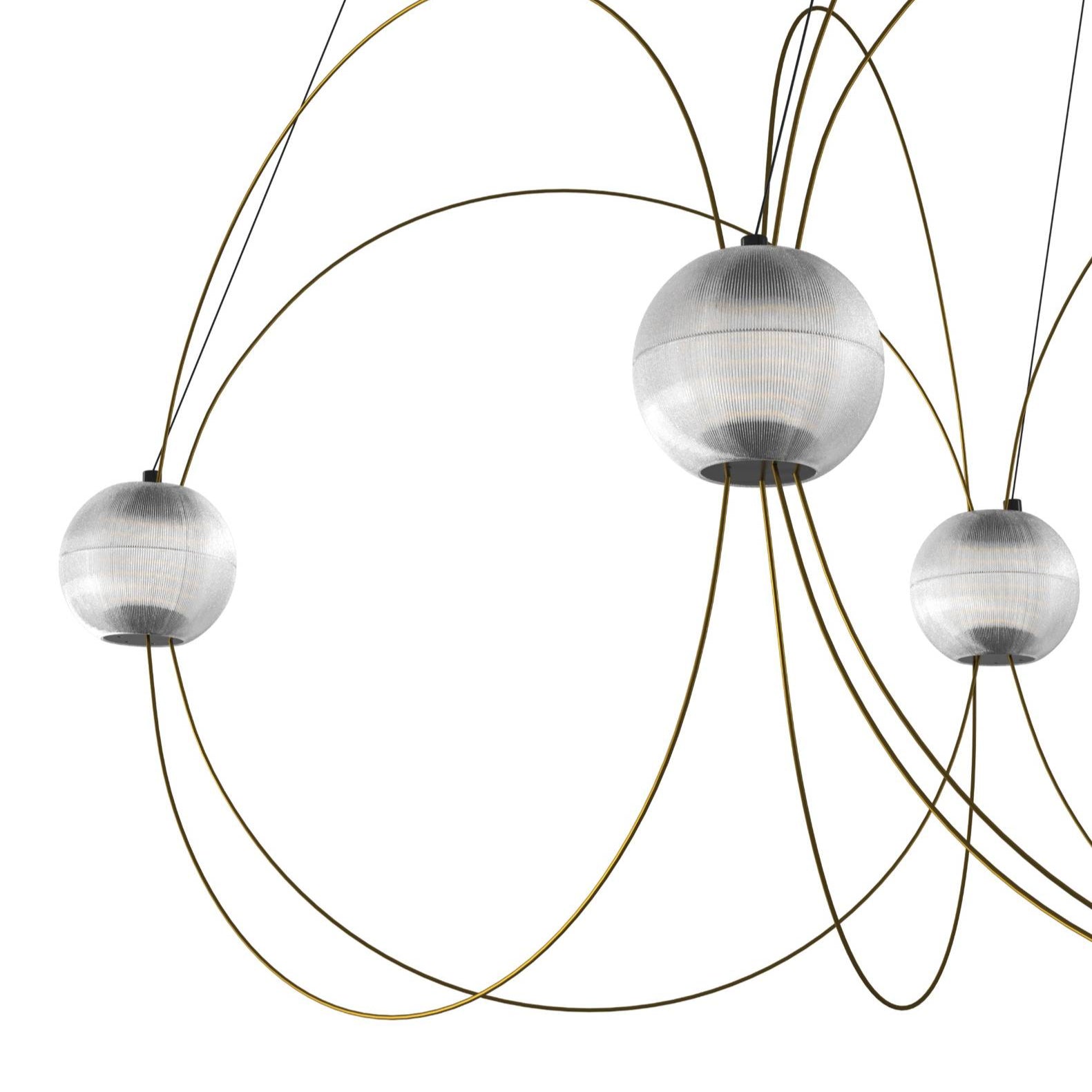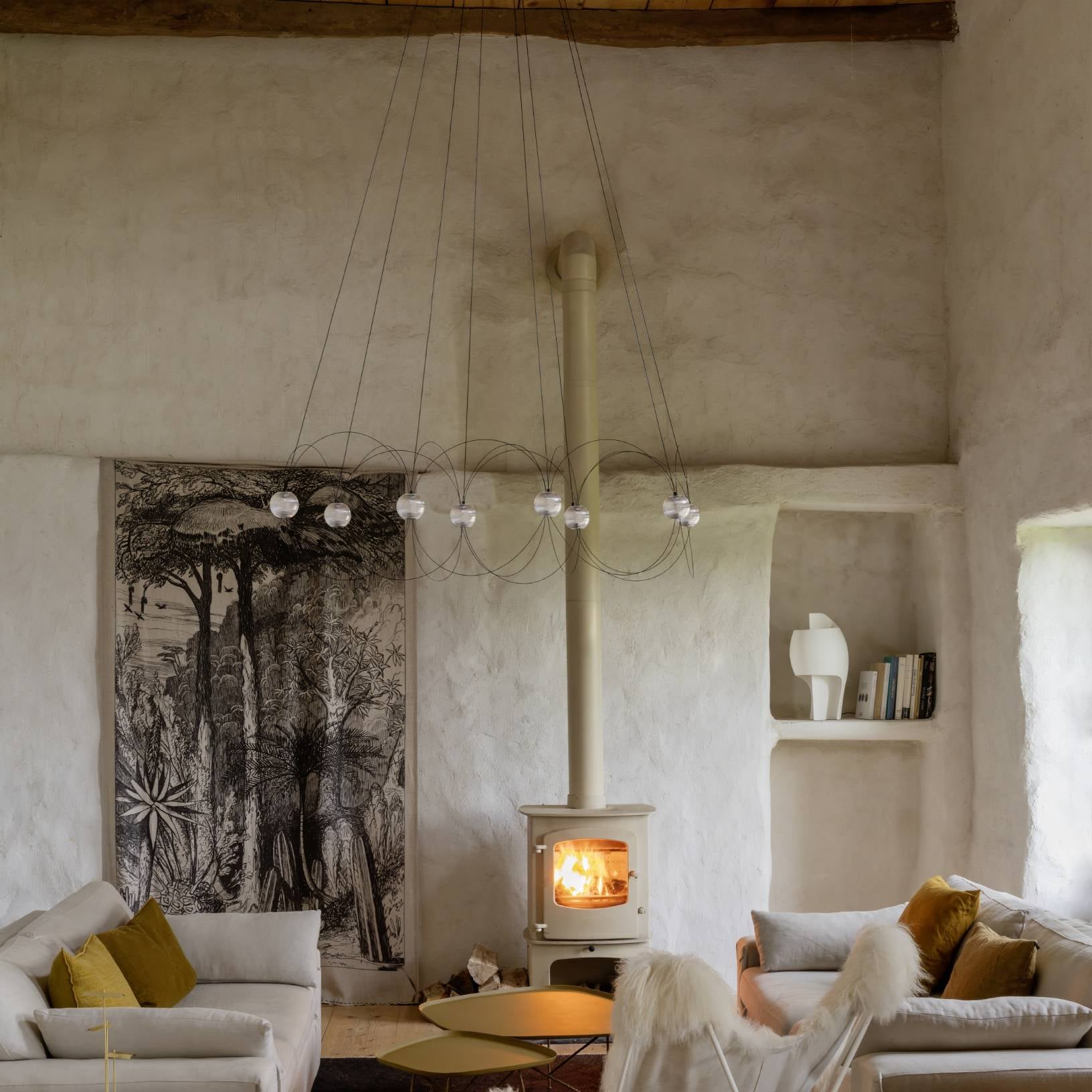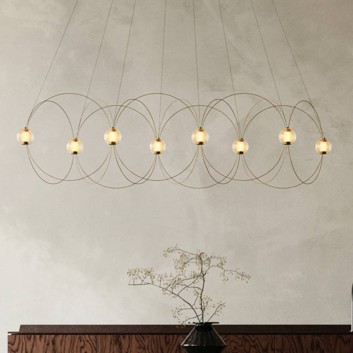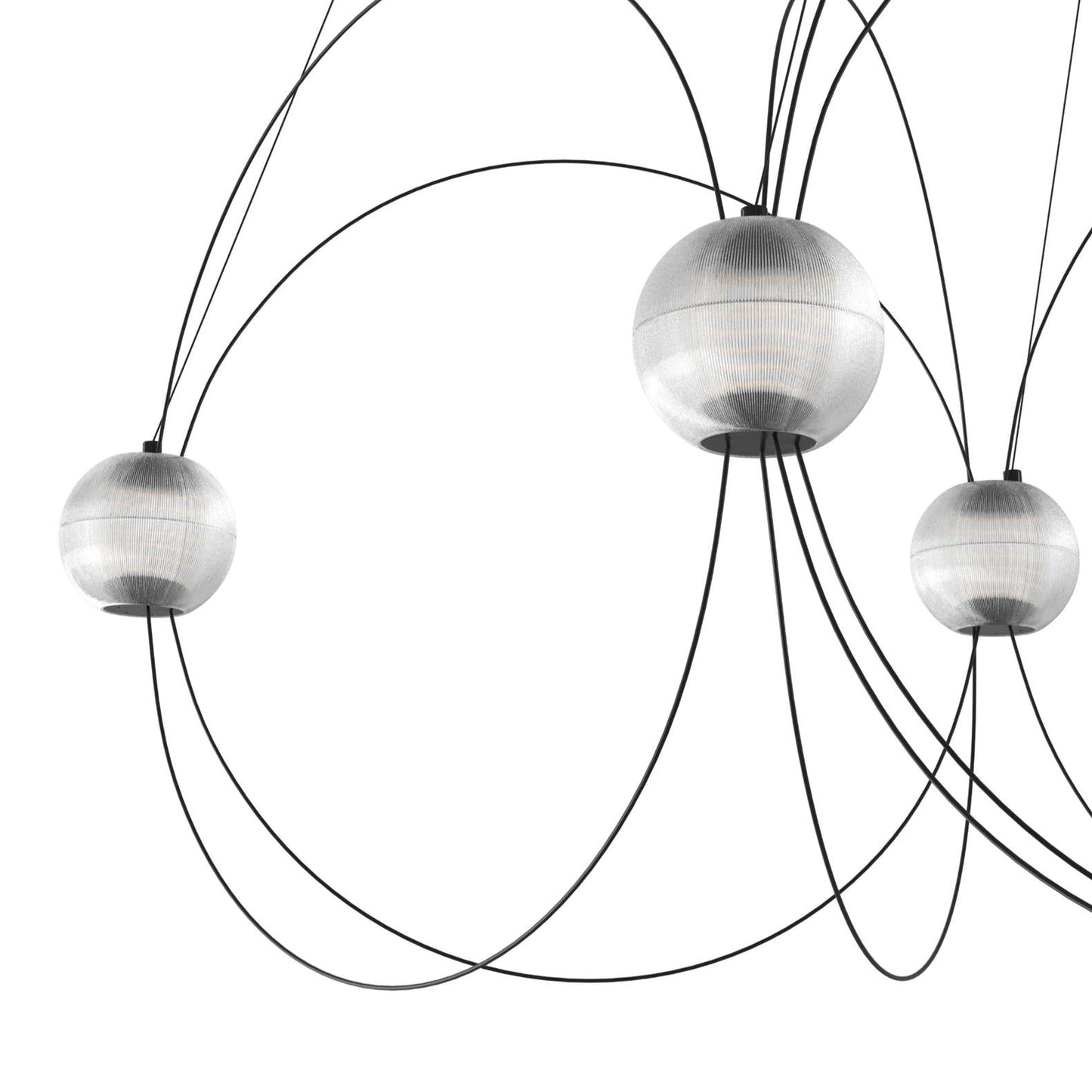 La suspension Munari 8, imaginée par Lutz Pankow, est une pièce au design aérien et sophistiqué. Dotée de huit sphères lumineuses en acrylique, reliées par une structure en acier et aluminium, elle crée un jeu d’équilibre entre légèreté et précision. Son esthétique minimaliste rappelle des constellations ou des champs magnétiques, apportant une touche artistique et contemporaine à tout espace. Équipée d’un éclairage LED performant, elle diffuse une lumière douce et chaleureuse. Disponible en noir ou en doré.