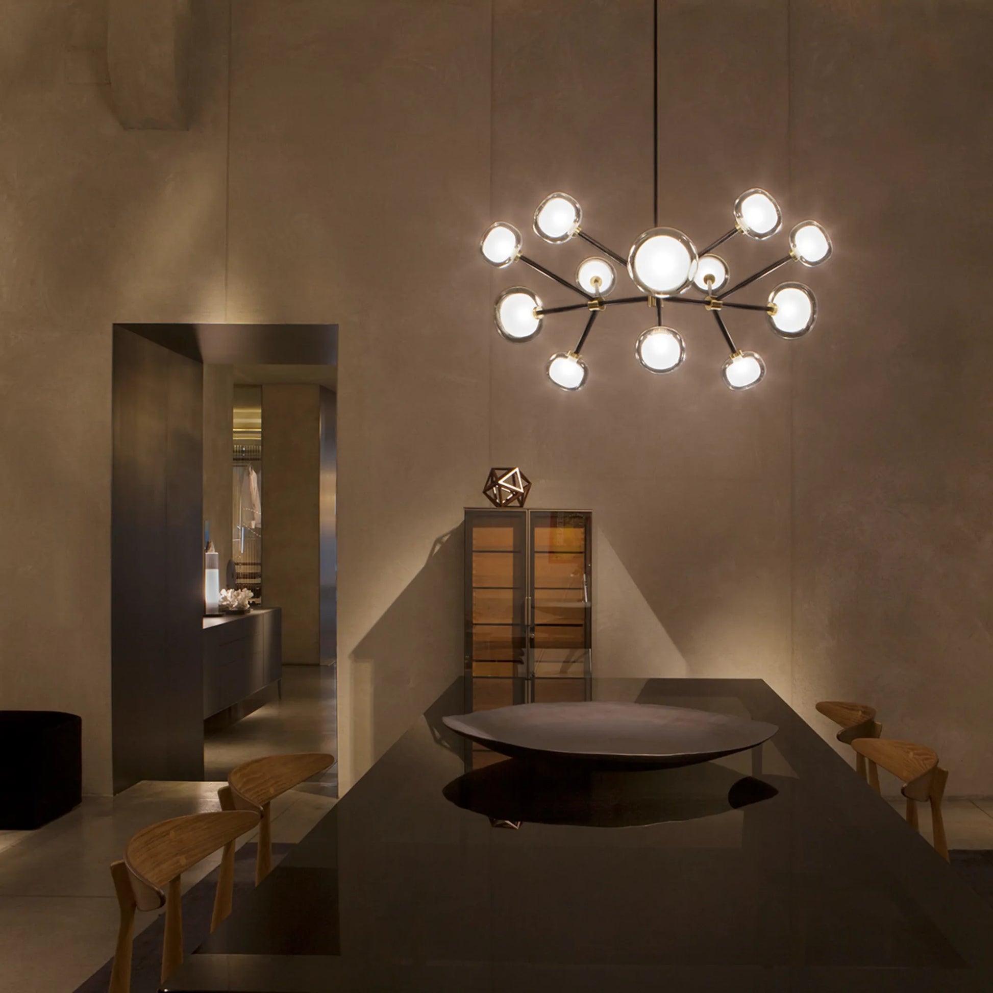 Alliant une esthétique contemporaine à un raffinement intemporel, ce luminaire diffuse une lumière douce et enveloppante. Inspirée par les années 50, cette suspension évoque un charme rétro, tout en étant parfaitement adaptable à tous les espaces. En solo ou en groupe, elle apporte une touche sophistiquée à votre intérieur.