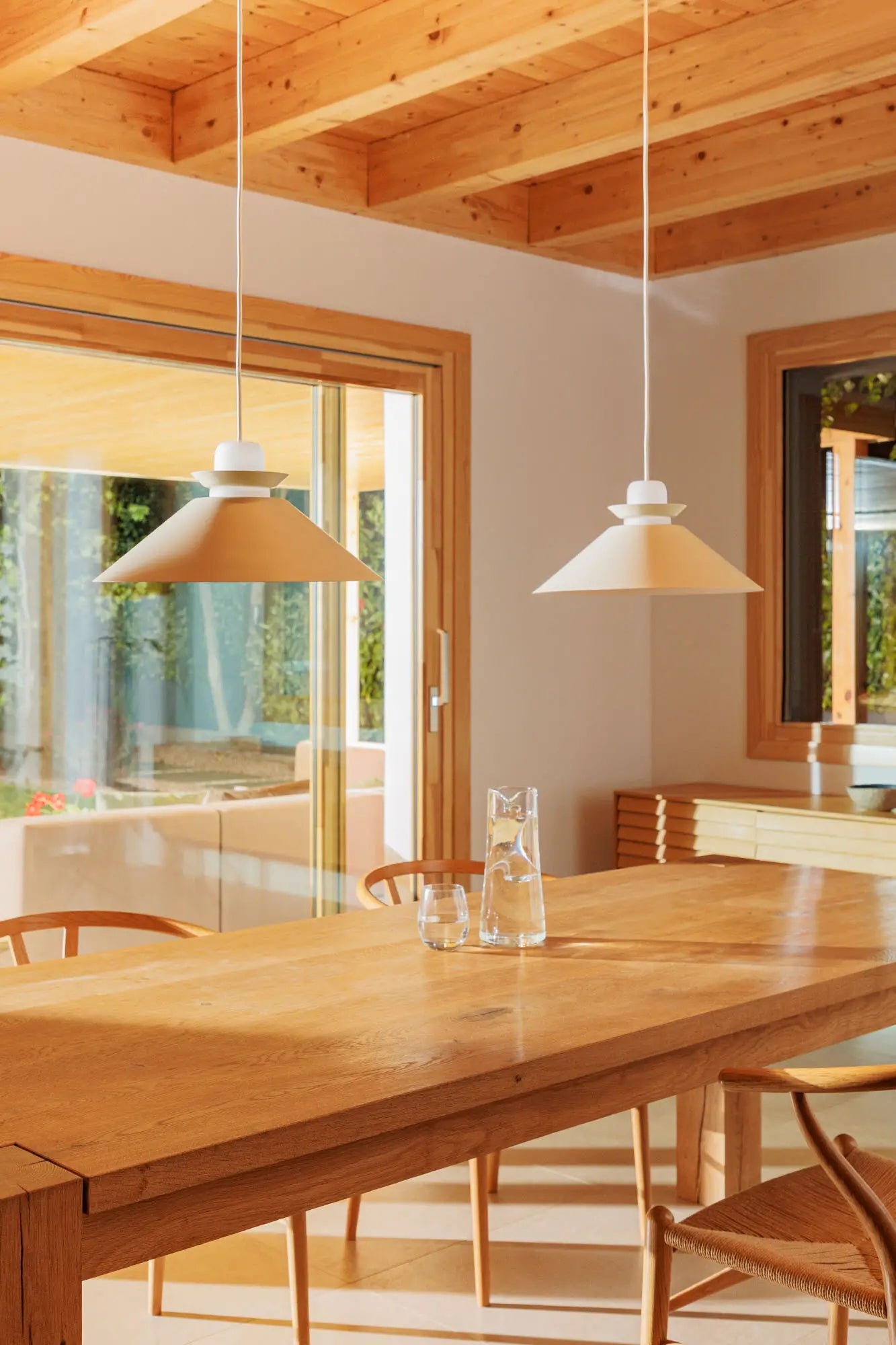 La finition beige et terre cuite est rehaussée d’un anneau décoratif en métal, situé entre l’abat-jour et le diffuseur, apportant une touche raffinée à l’ensemble. Cette suspension est idéale pour illuminer de grands espaces comme les salles à manger, salons ou bureaux. Ampoule E27 non incluse.
