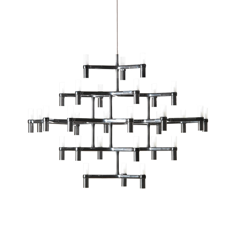 La forme de cette suspension a été inspirée au designer par la forme du flocon de neige. Les diffuseurs en verre dépoli apportent une lumière chaleureuse et permettent un éclairage général sur toute la pièce. Ce luminaire peut donc parfaitement éclairer une chambre ou une table de repas.