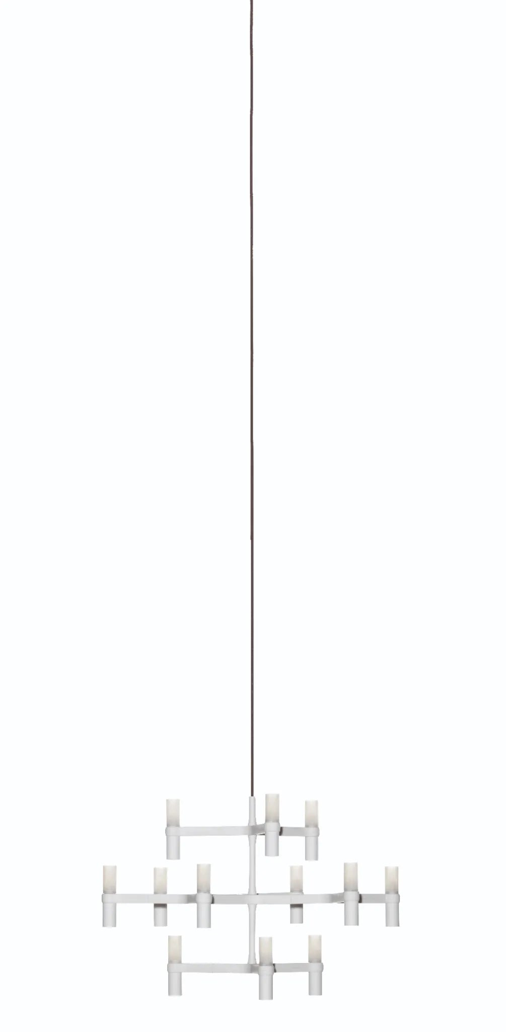 La forme de cette suspension a été inspirée au designer par la forme du flocon de neige. Les diffuseurs en verre dépoli apportent une lumière chaleureuse et permettent un éclairage général sur toute la pièce. Ce luminaire peut donc parfaitement éclairer une chambre ou une table de repas.